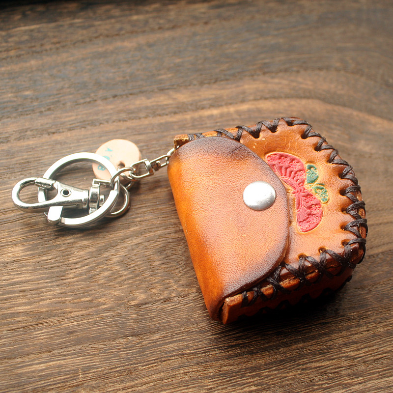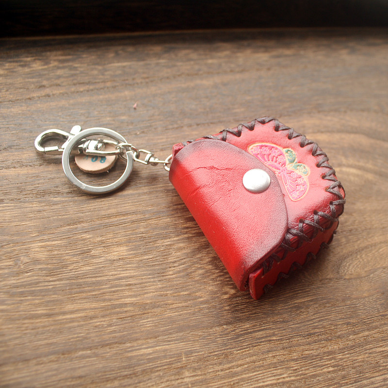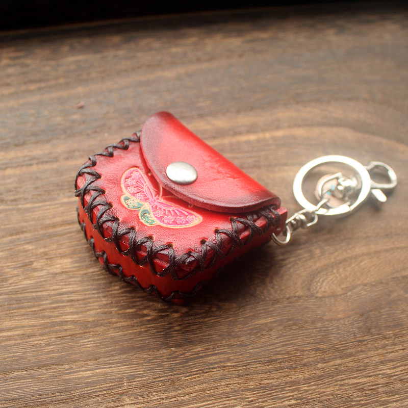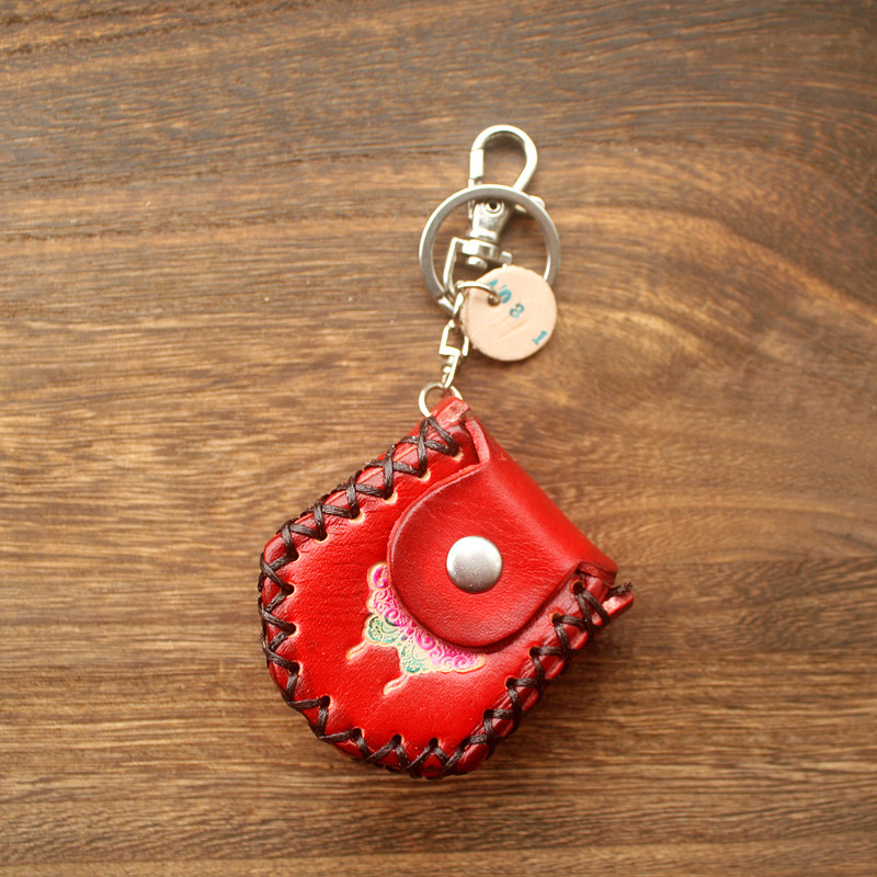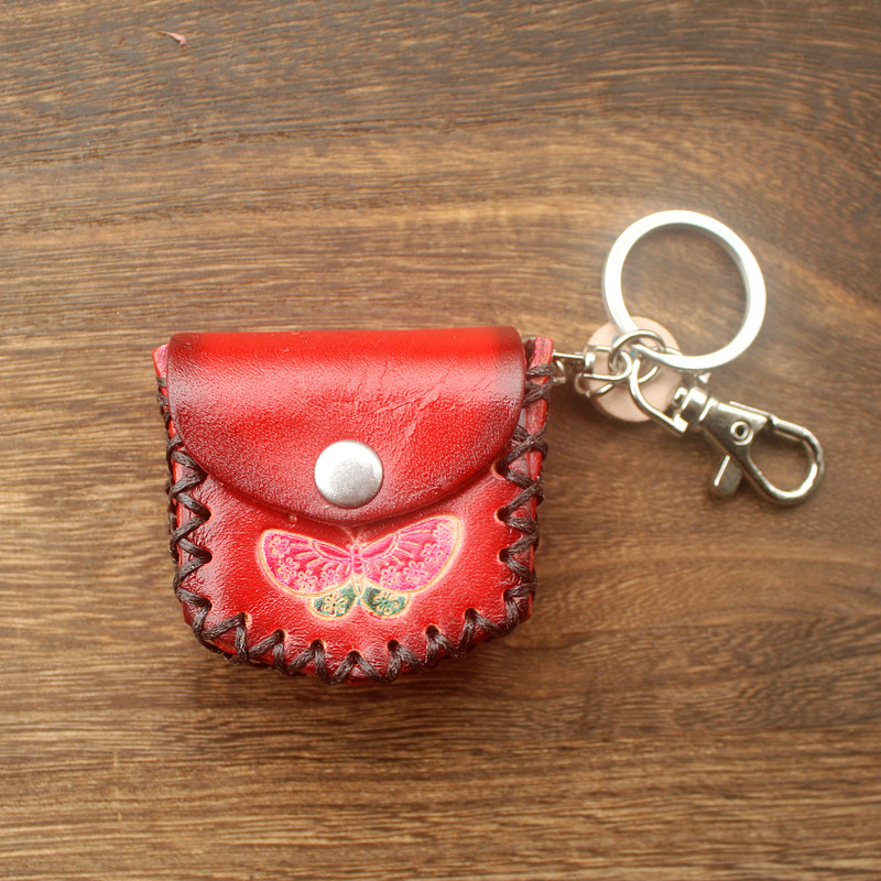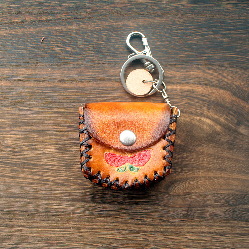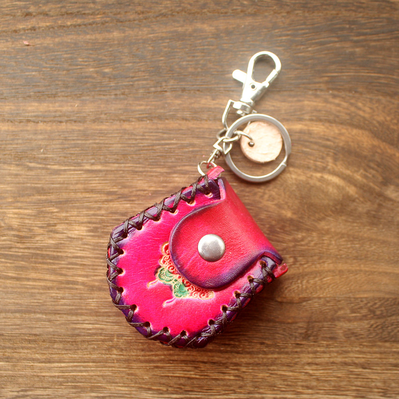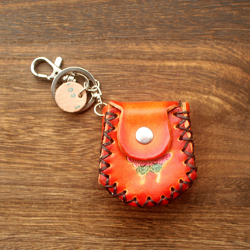牛皮鑰匙扣零錢包女韓國簡約民族風按扣迷你硬幣包可愛耳機收納包