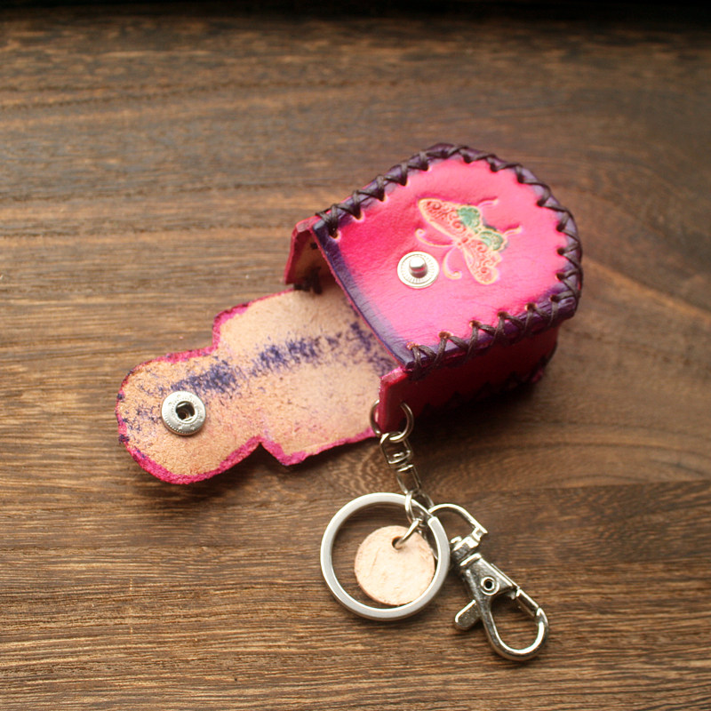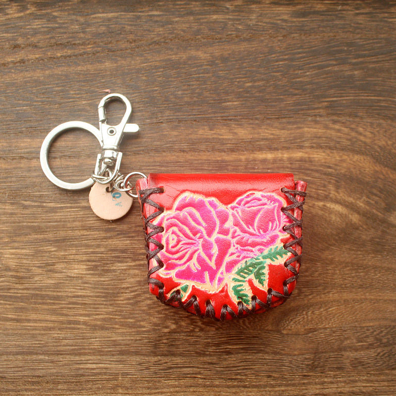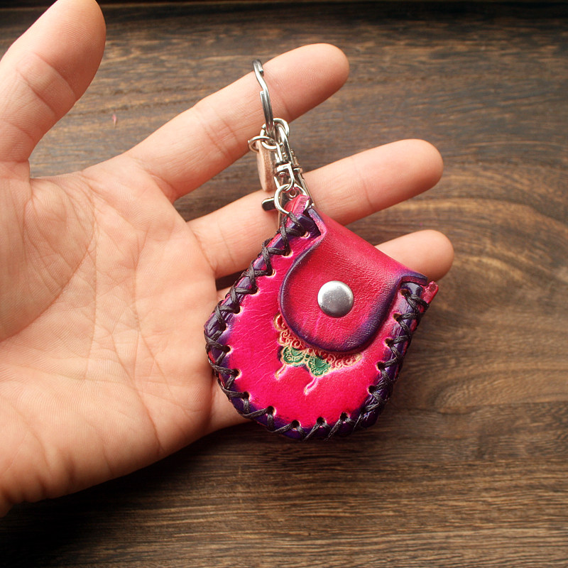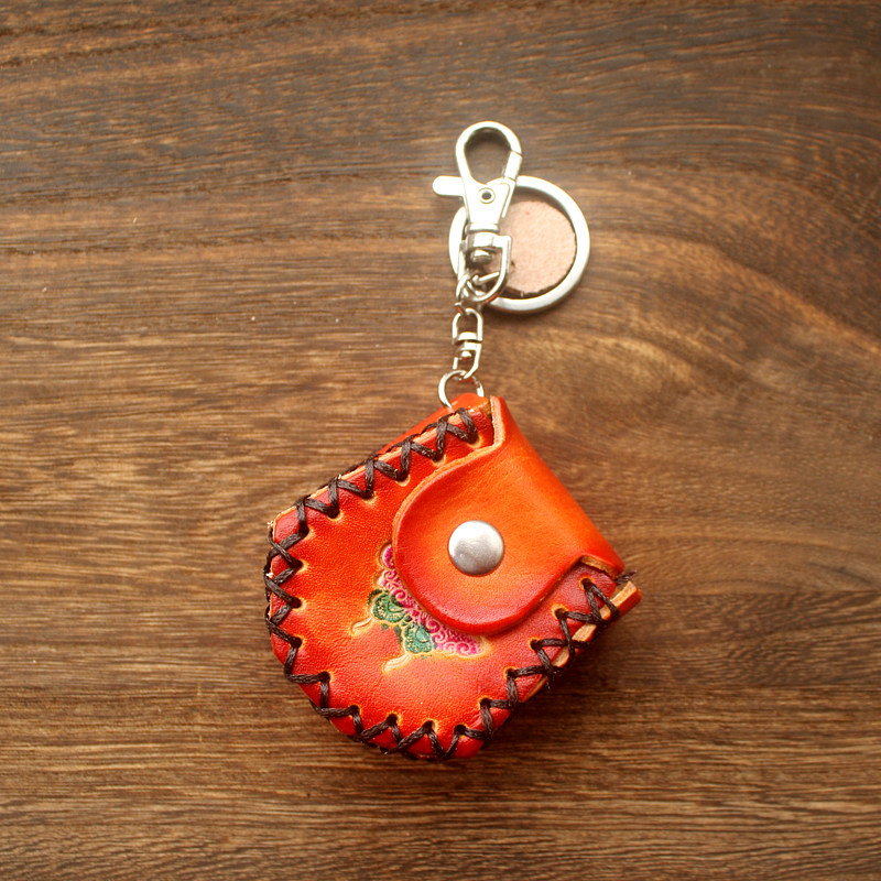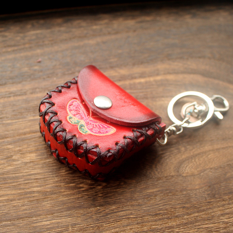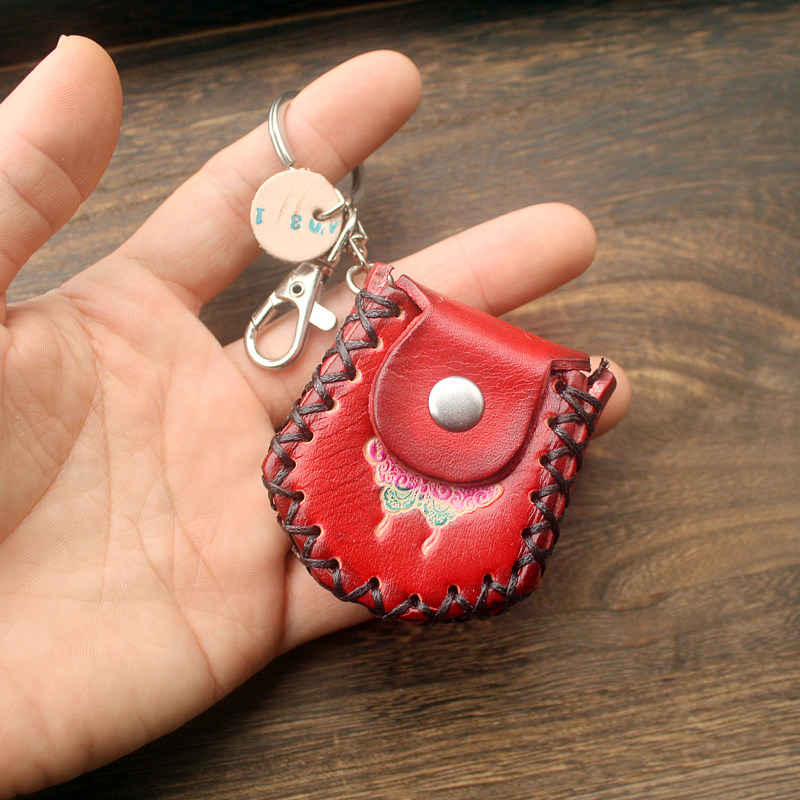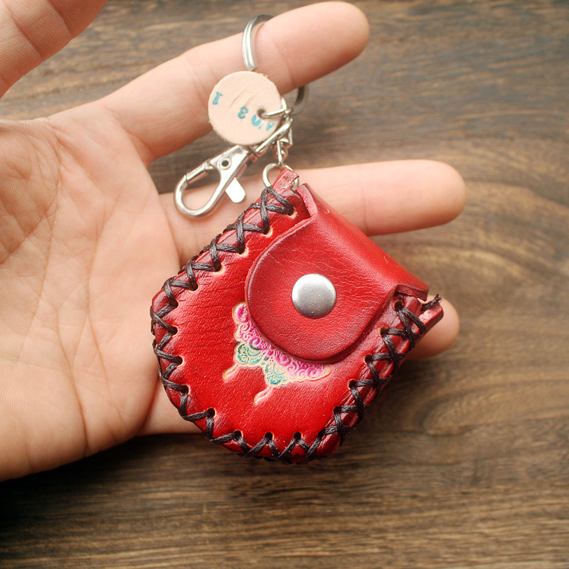 牛皮鑰匙扣零錢包女韓國簡約民族風按扣迷你硬幣包可愛耳機收納包
