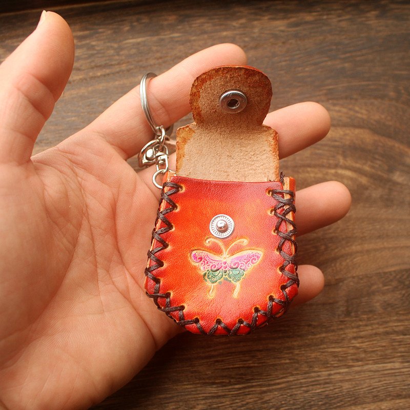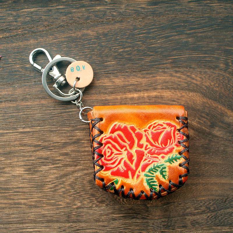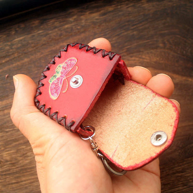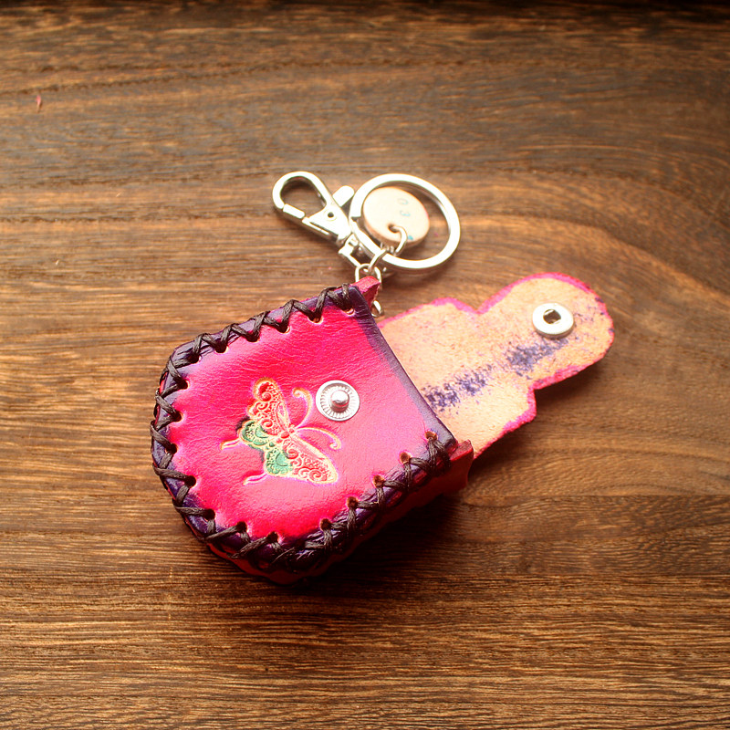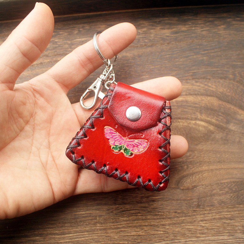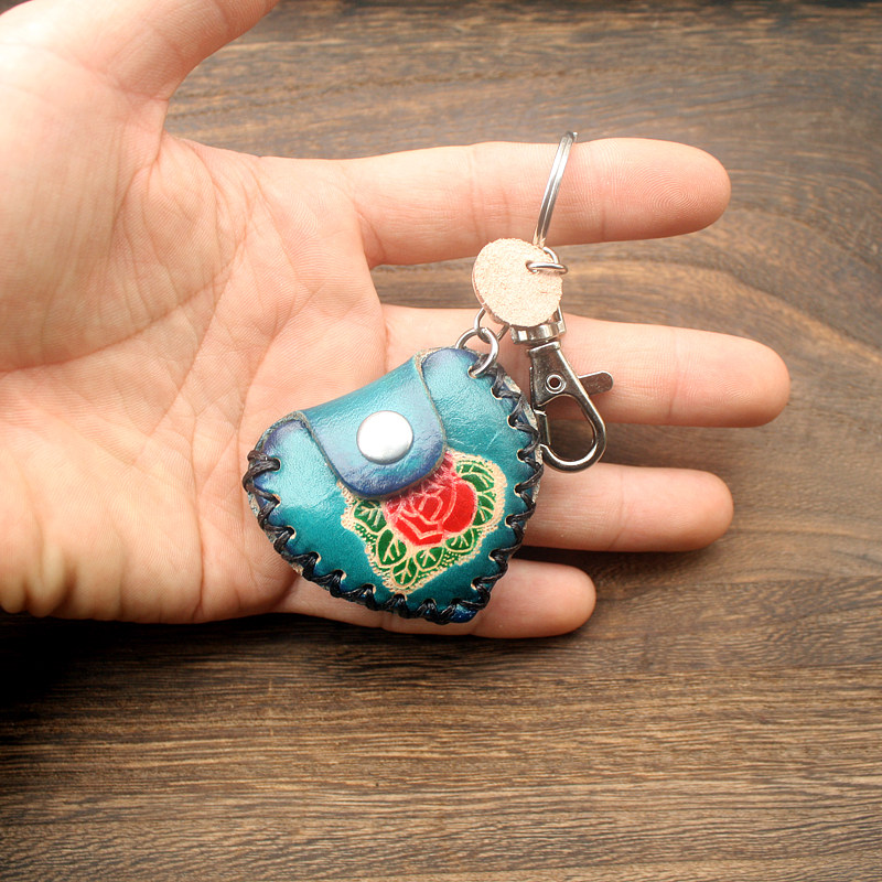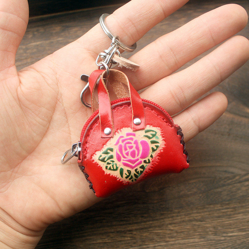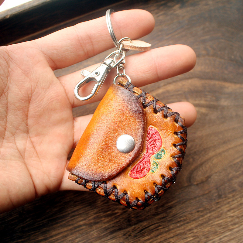 牛皮鑰匙扣零錢包女韓國簡約民族風按扣迷你硬幣包可愛耳機收納包