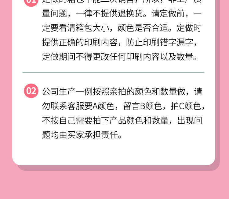 - 本人了解並接受海外代購的特殊性,並確認不會因規則中所列條款(包括但不限於:商品不可取消、折價券使用規則、不可控因素導致訂單取消等)而要求商家賠償或補償。