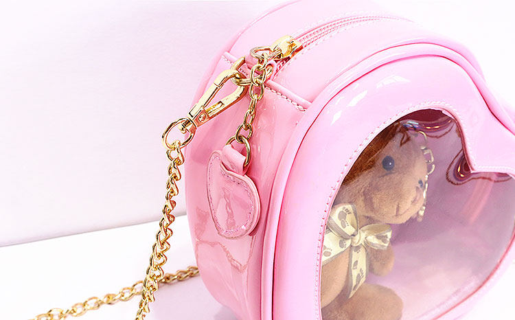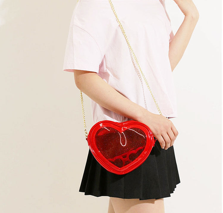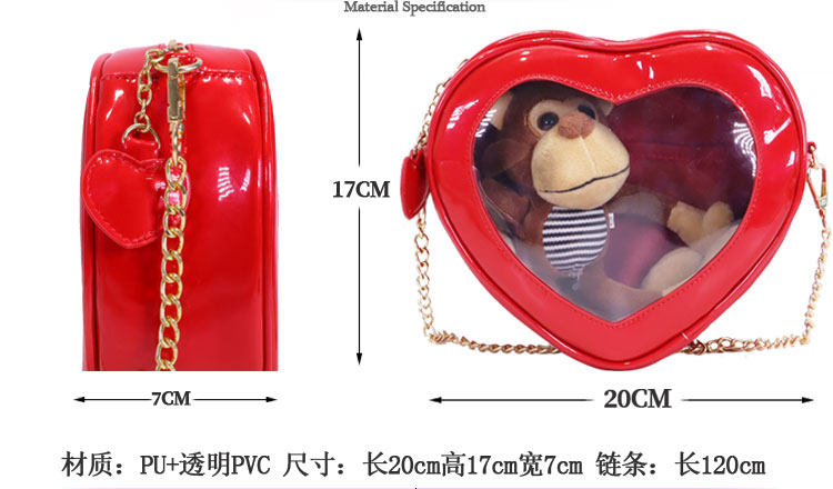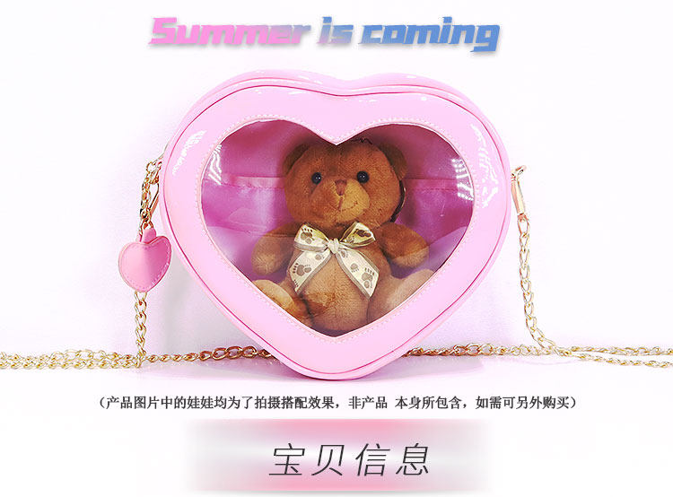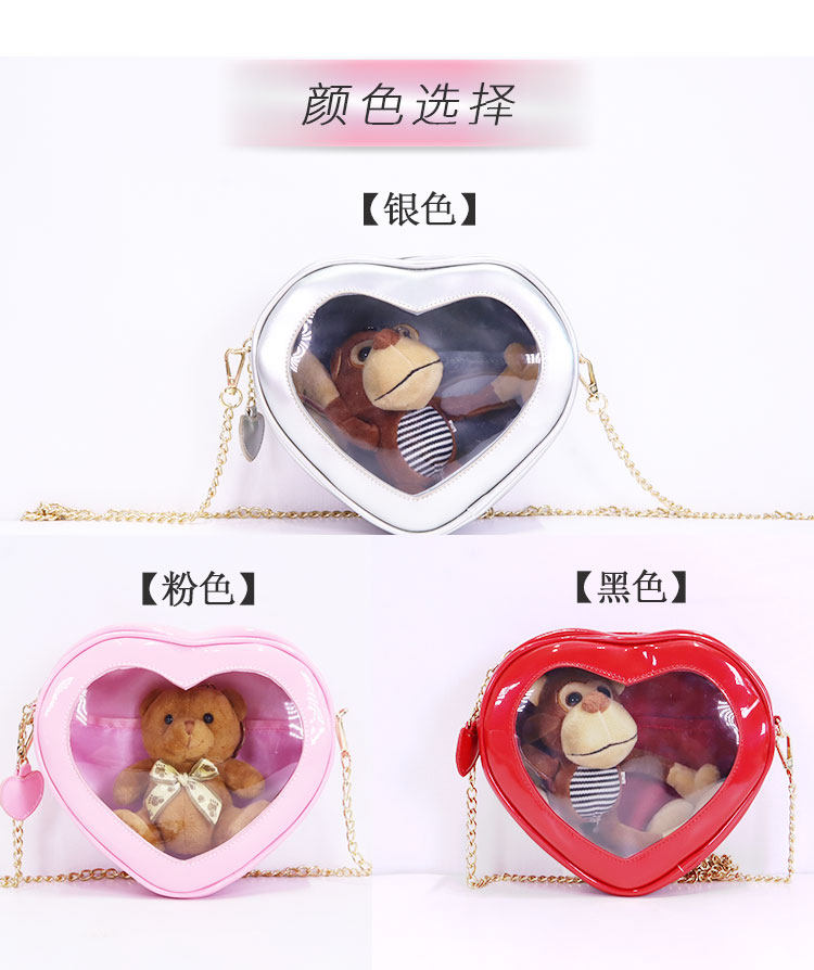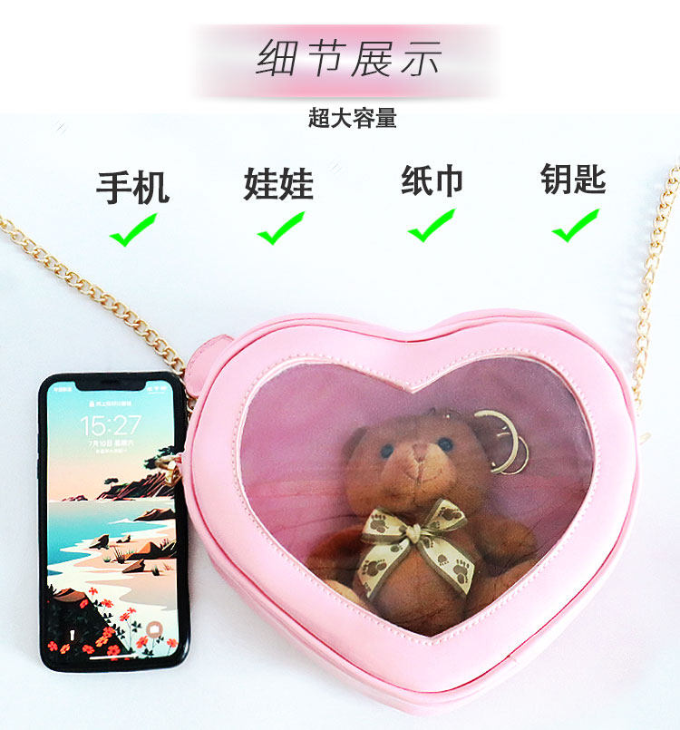 2021 夏 新款 愛心鏈條 單肩斜挎果凍包 可愛透明 娃包10cm 痛包 jk包包 女