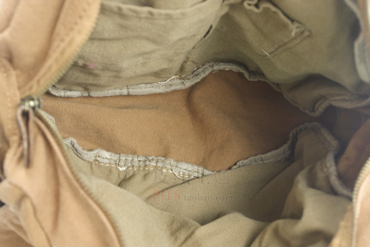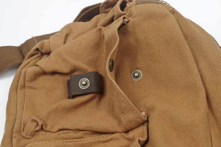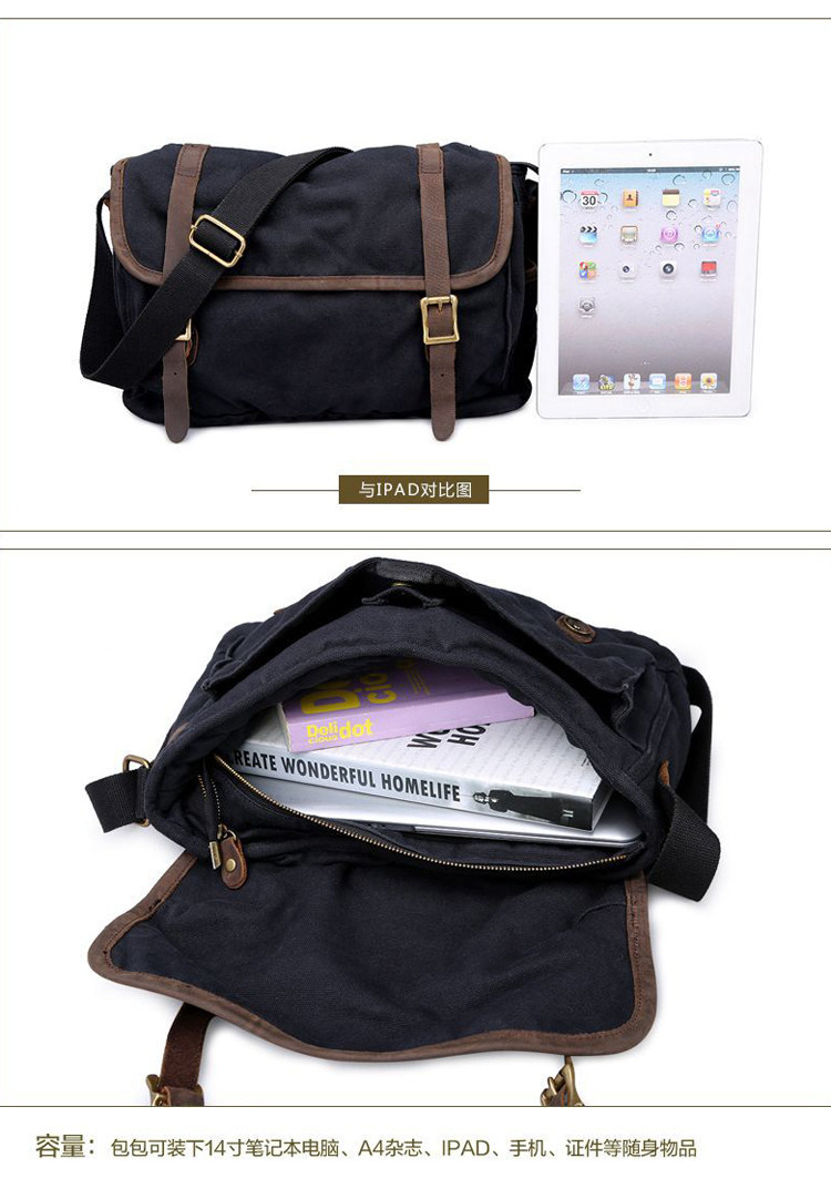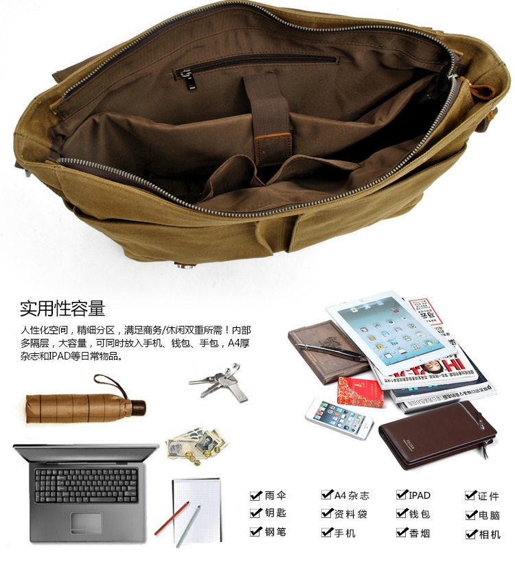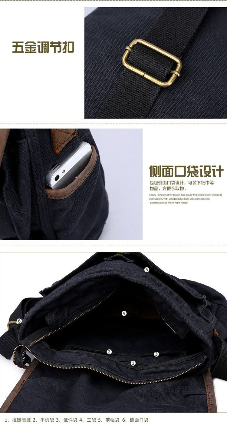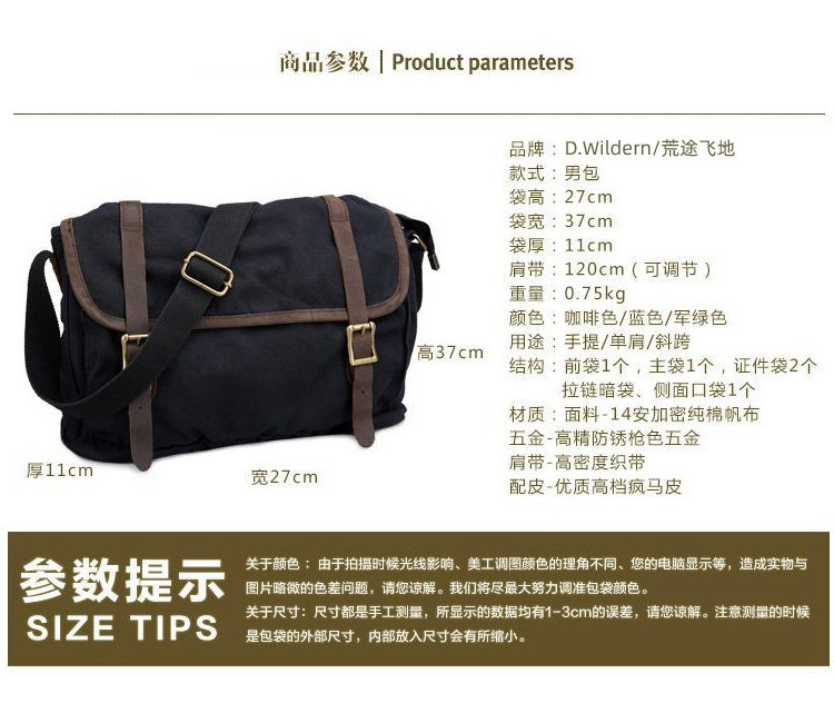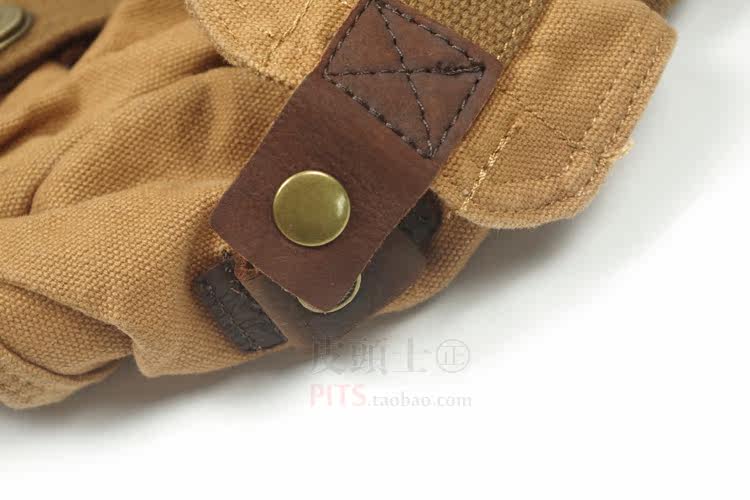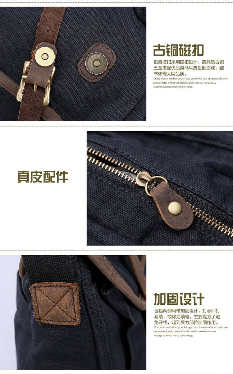 材質:油蠟高密度帆布,頭層瘋馬皮,古銅鋅合金,滌棉