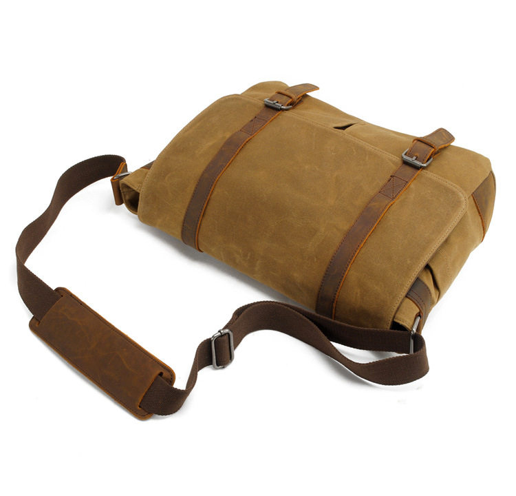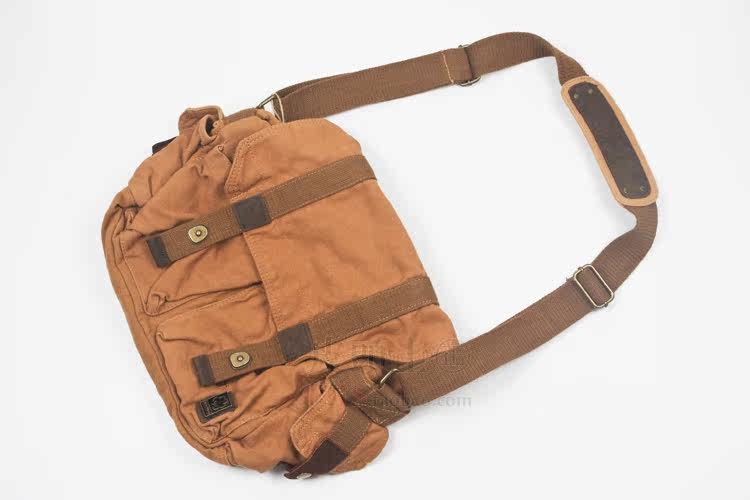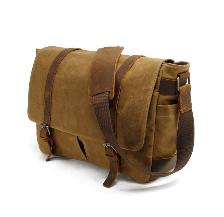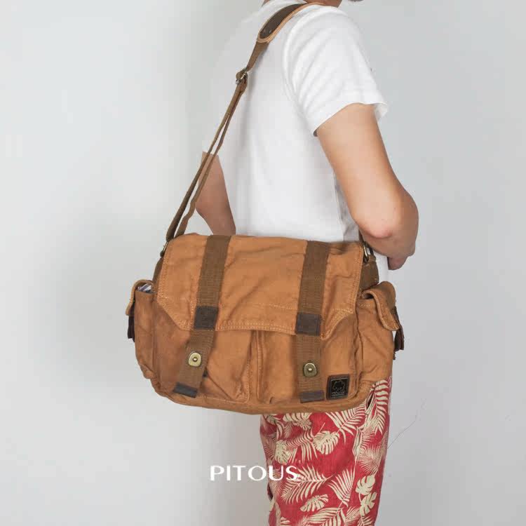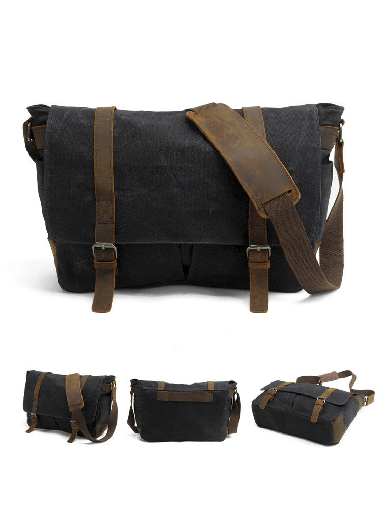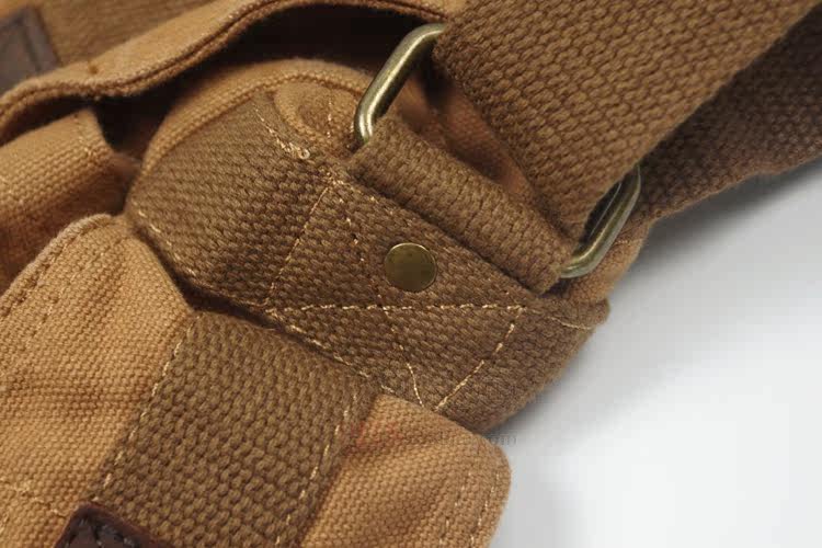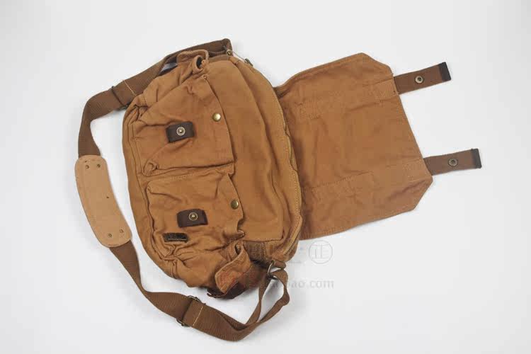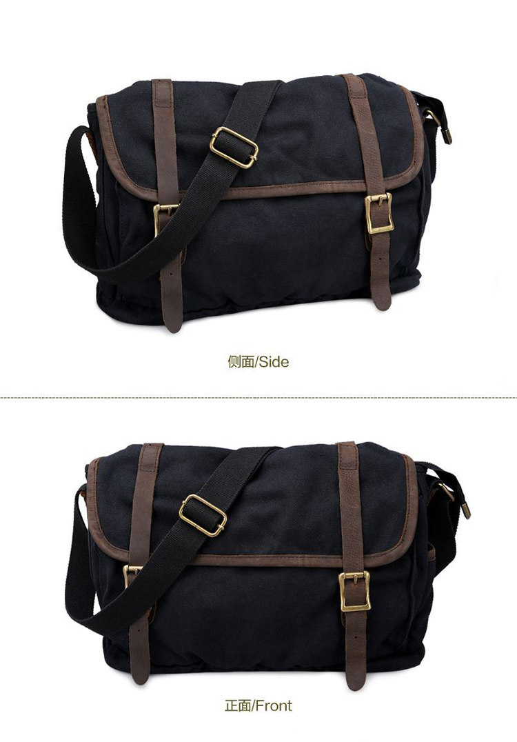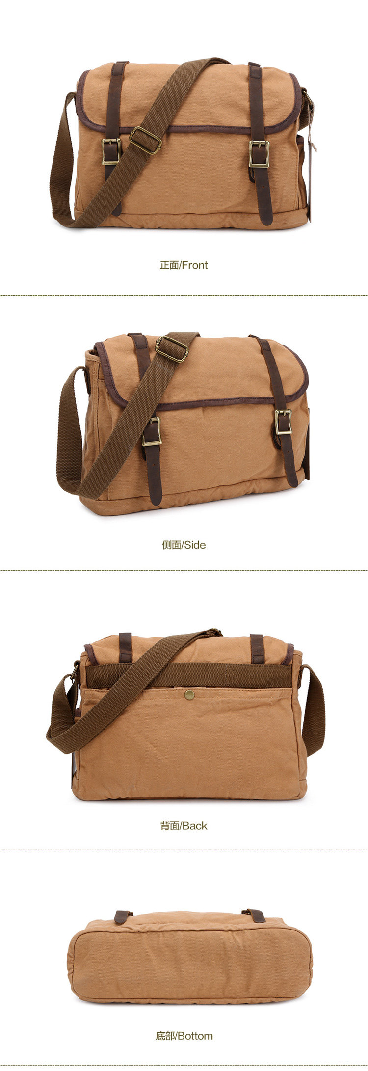 材質:油蠟高密度帆布,頭層瘋馬皮,古銅鋅合金,滌棉