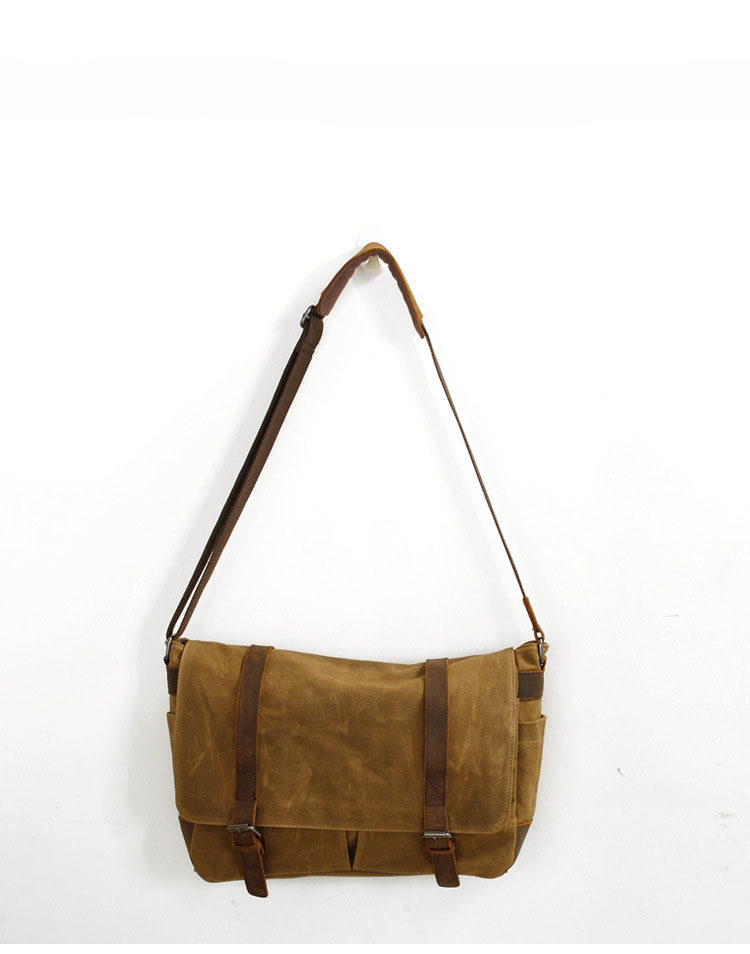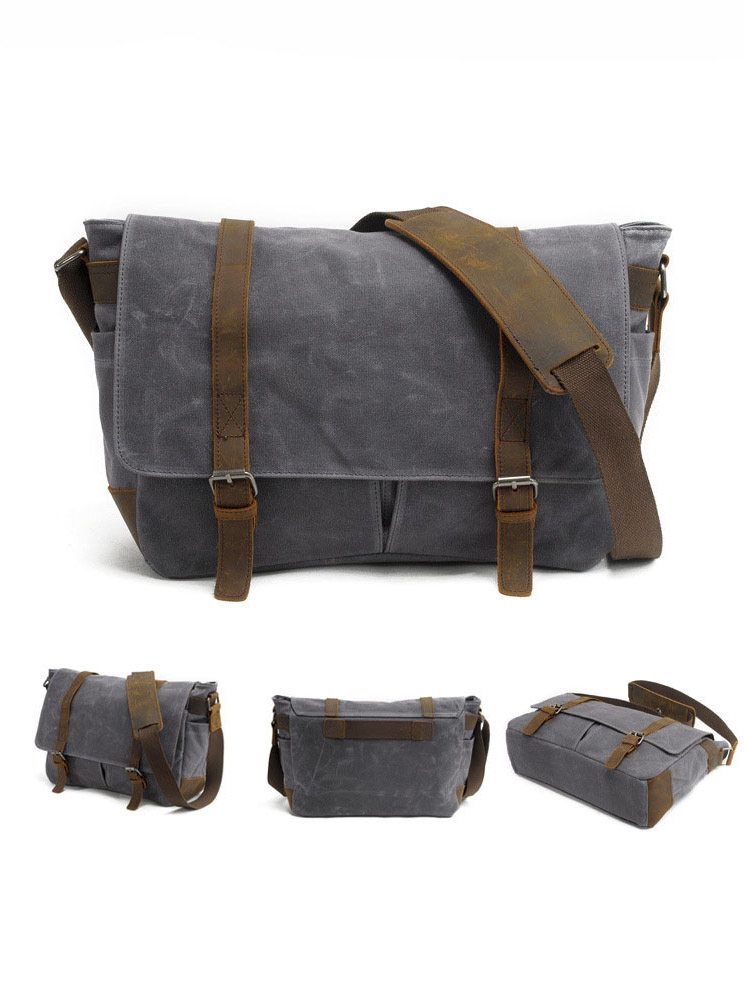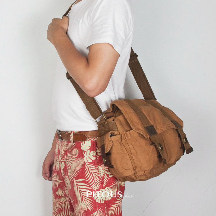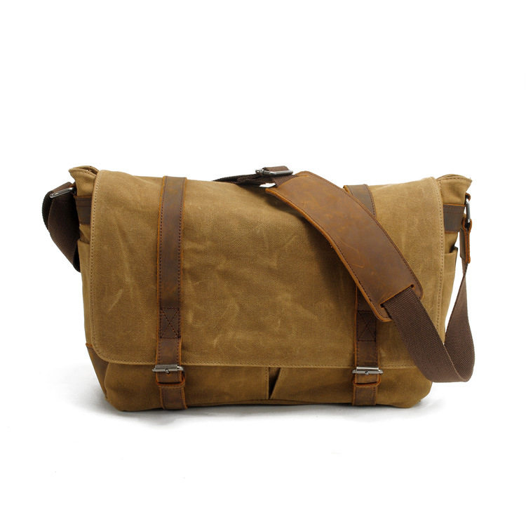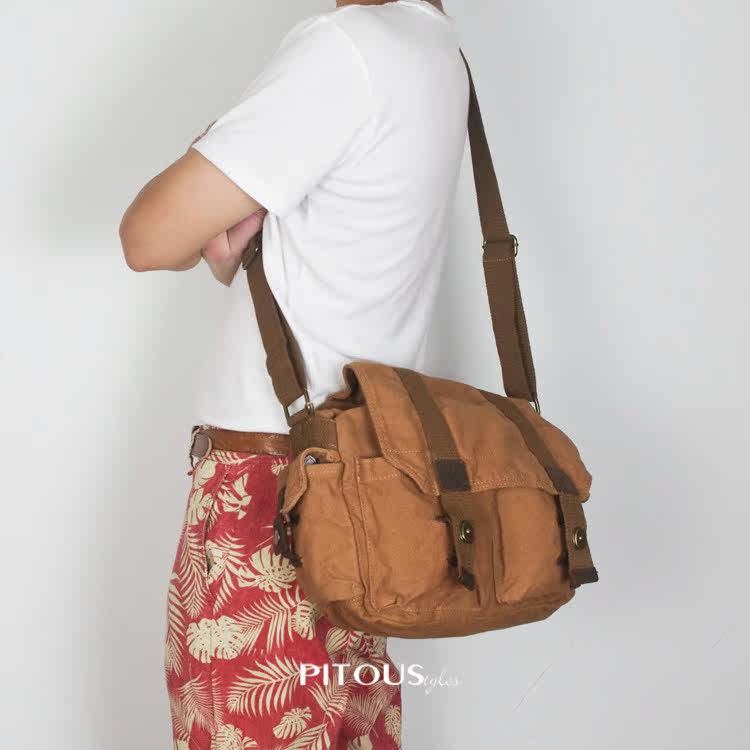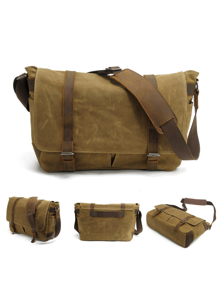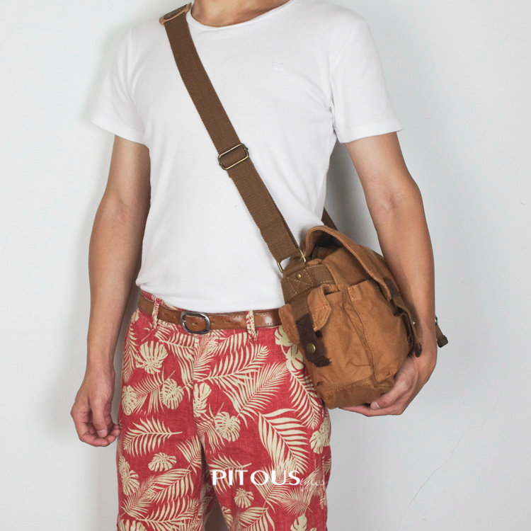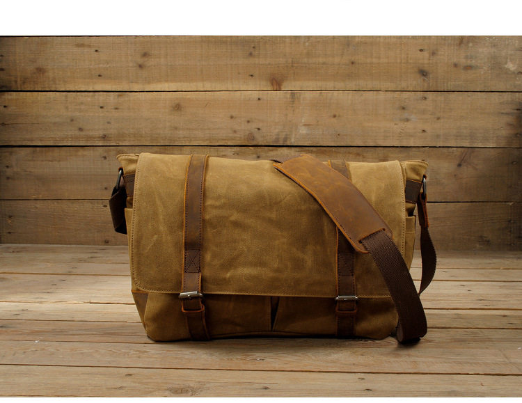材質:油蠟高密度帆布,頭層瘋馬皮,古銅鋅合金,滌棉