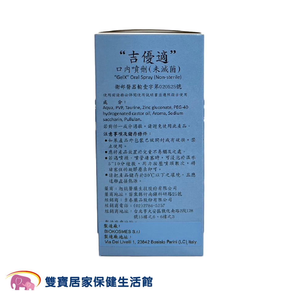 醫療器材許可證所載品名:"吉優適" 口內噴劑