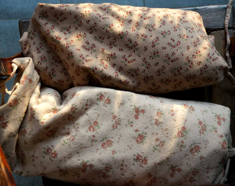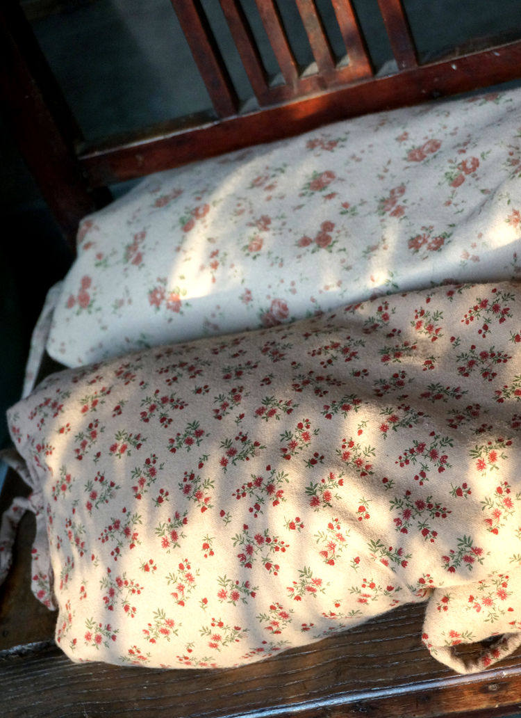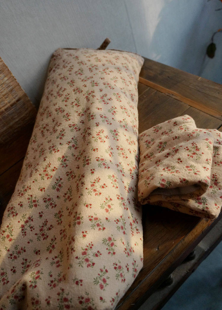到了冬天, 就換作溫暖的磨毛花朵面料枕套 。