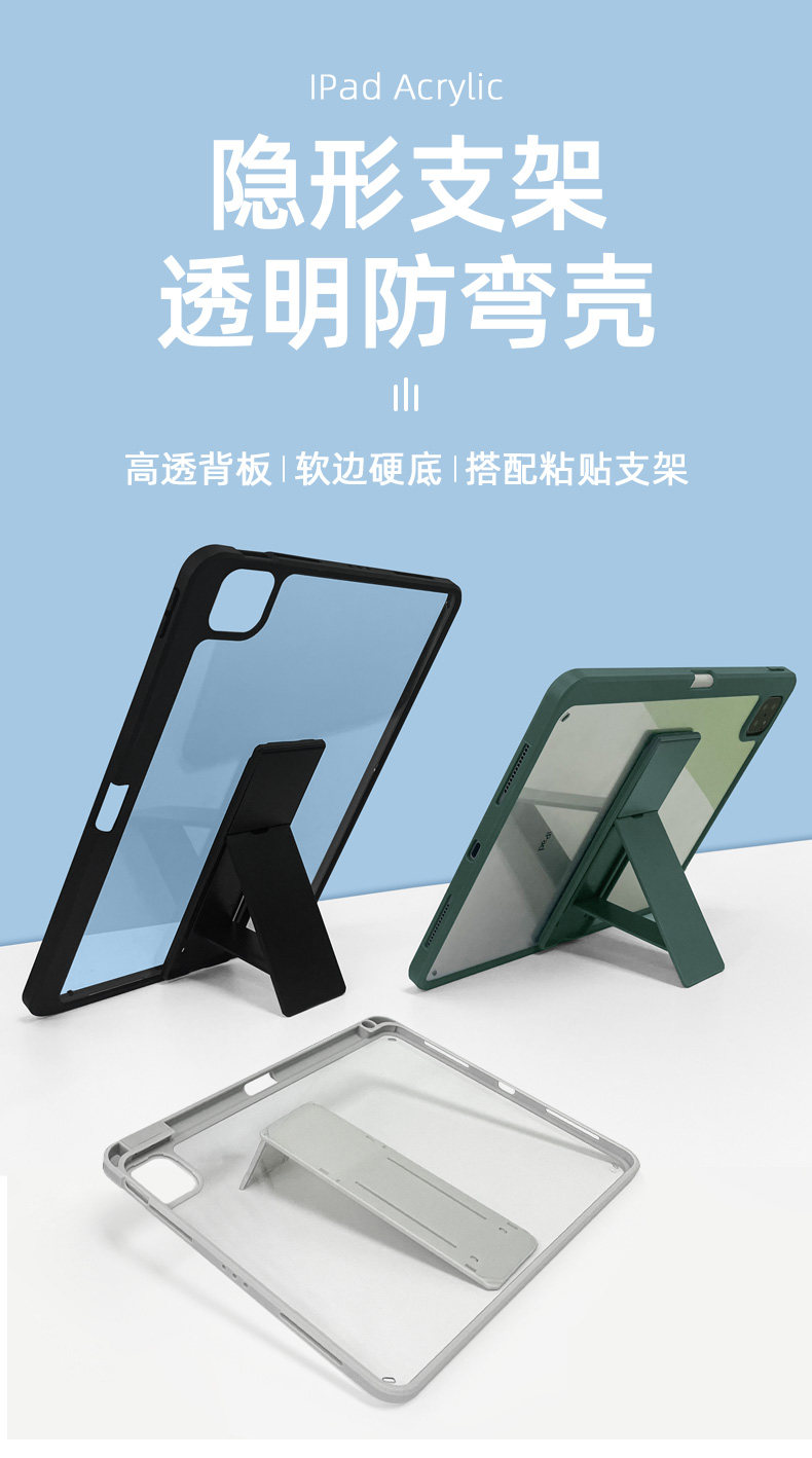 內置筆槽,透明硬底殼,可搭配支架