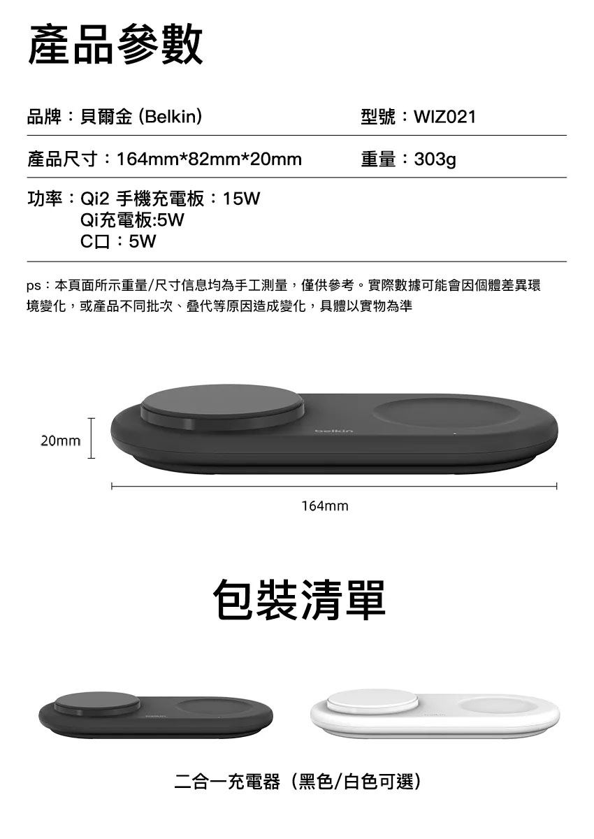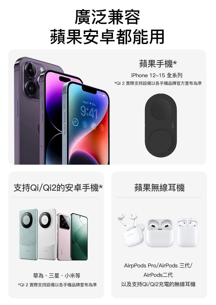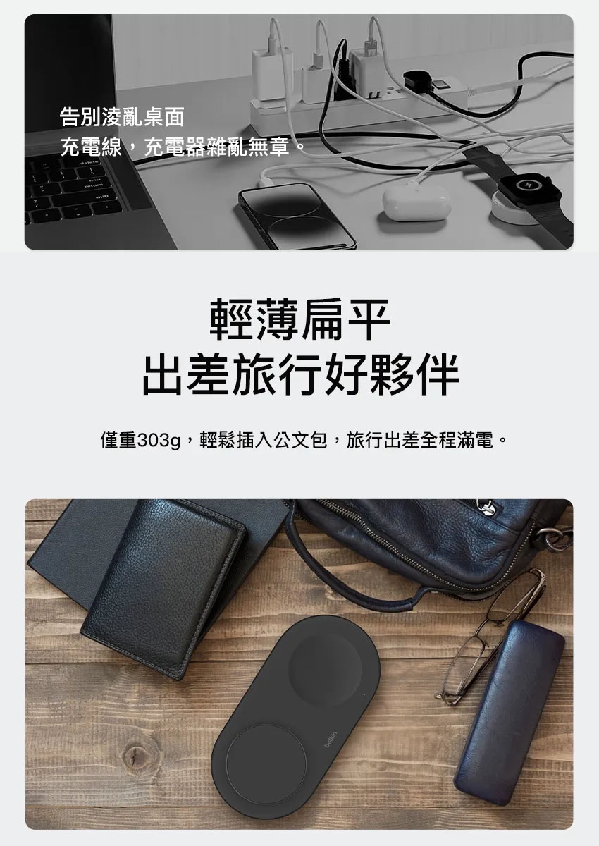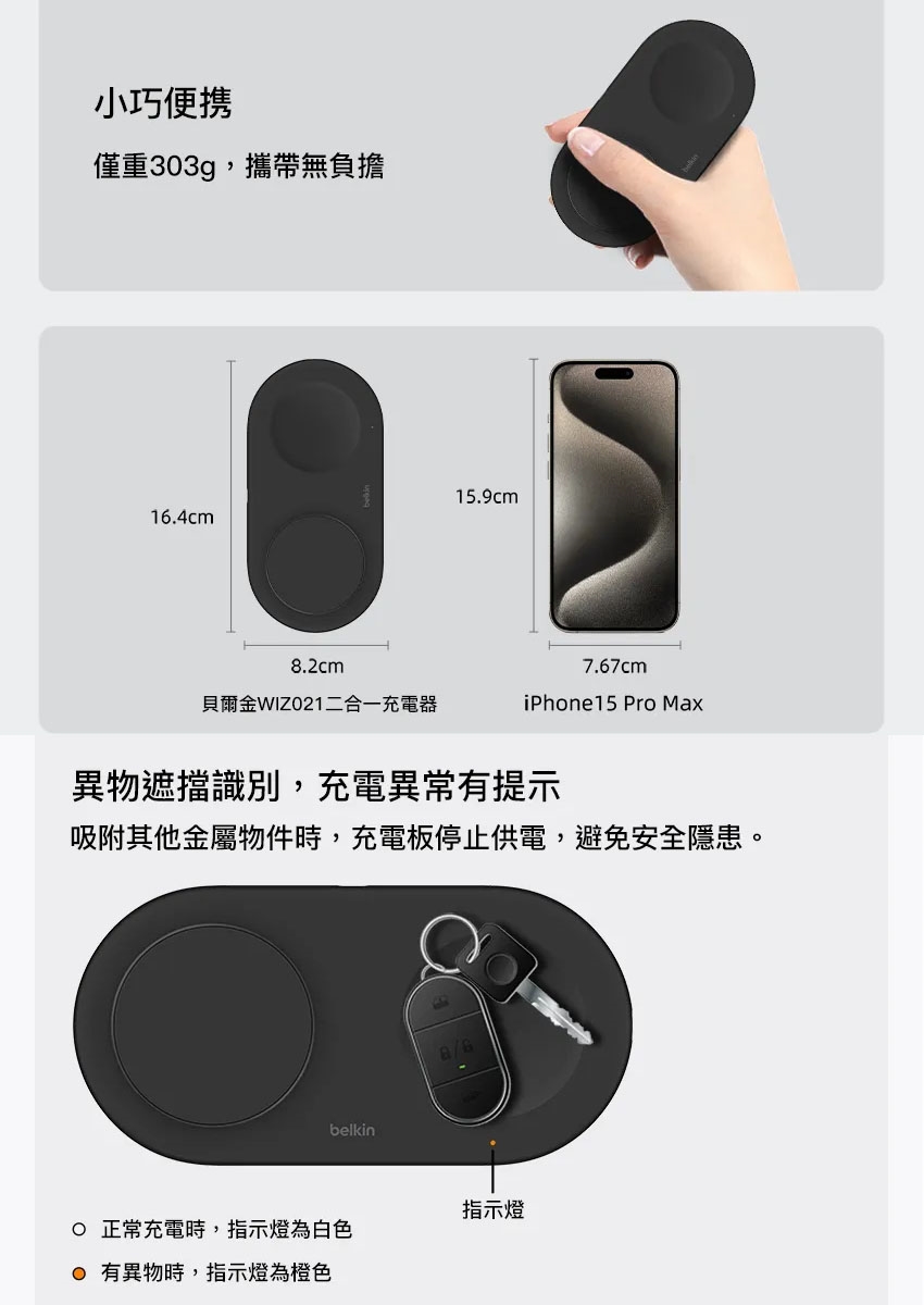 BELKIN貝爾金 BoostCharge Pro Qi2 15W 2合1 磁吸無線充電板