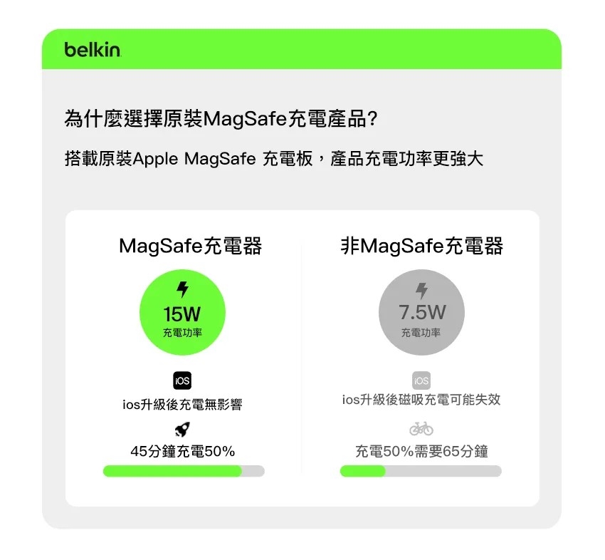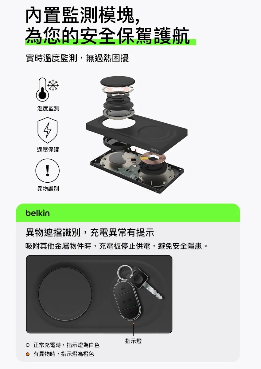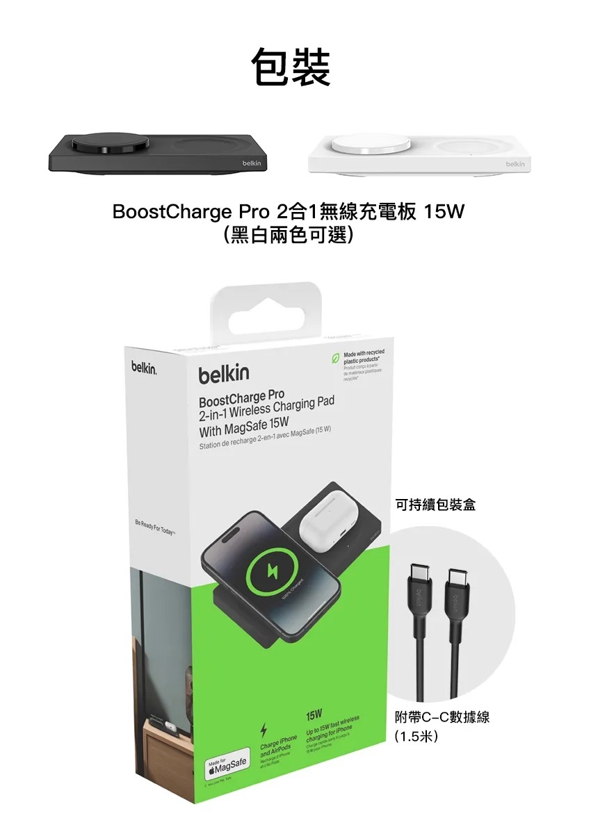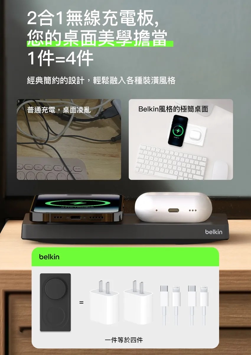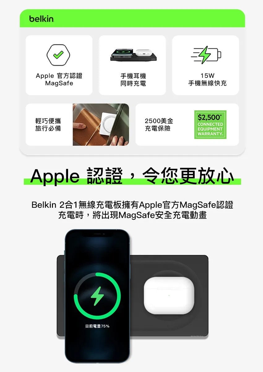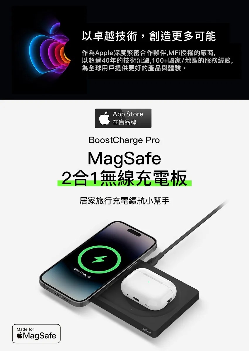 BELKIN貝爾金 BoostCharge Pro MagSafe 2 合 1 無線充電板 15W