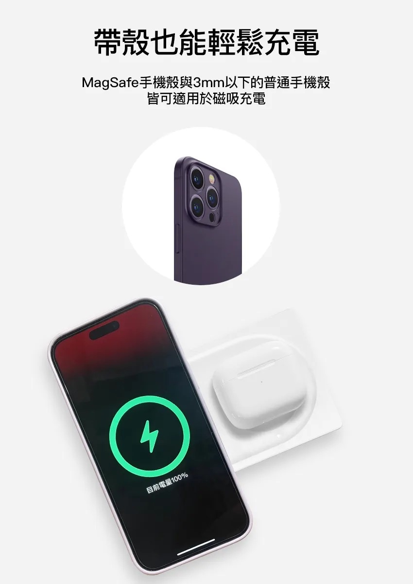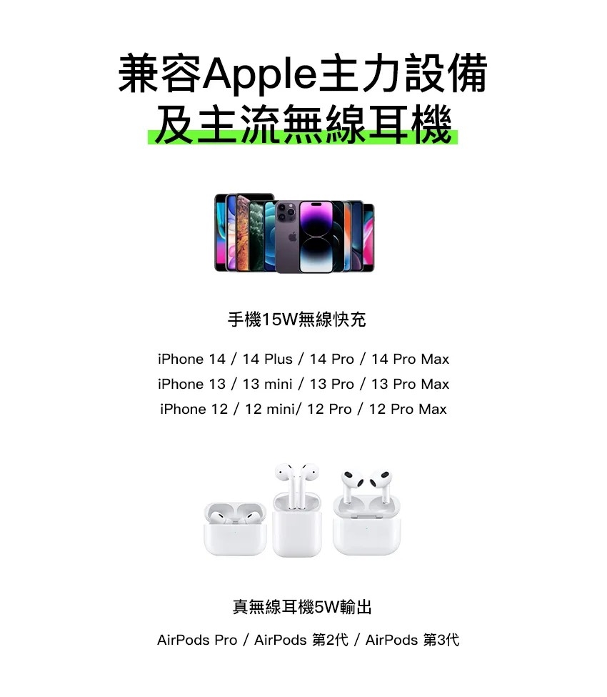 - 同時為iPhone 15/14/13系列和AirPods無線充電