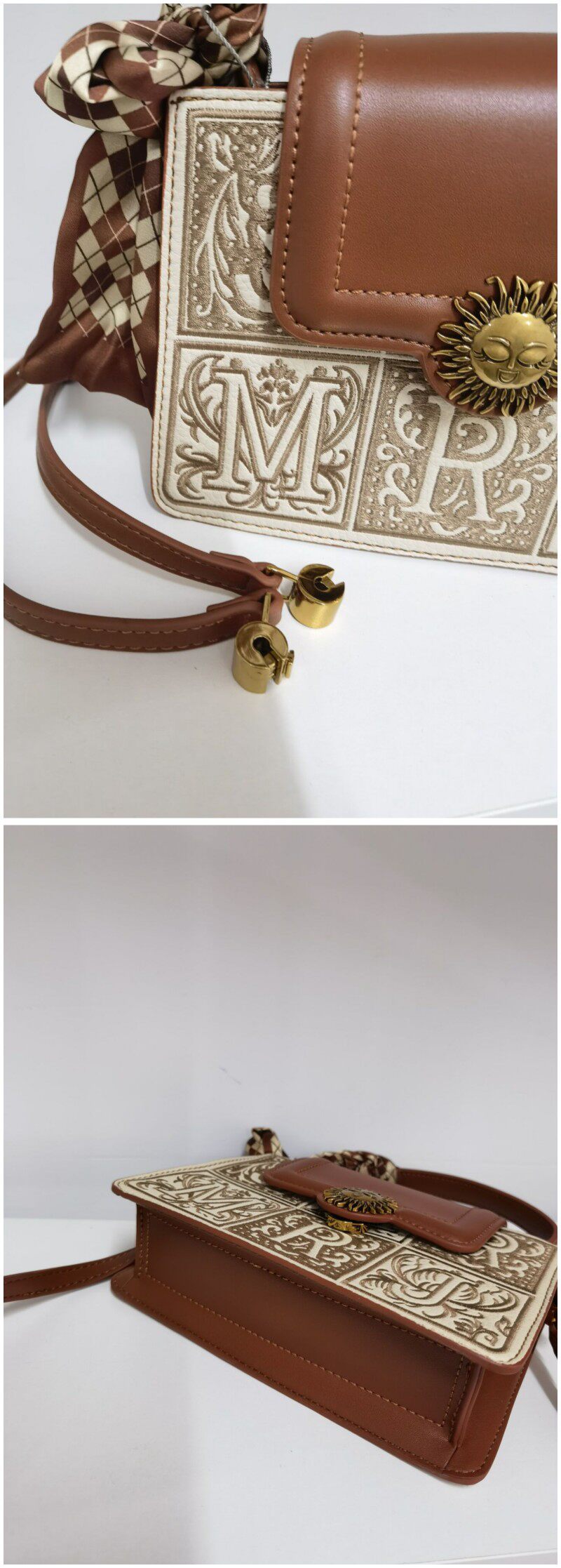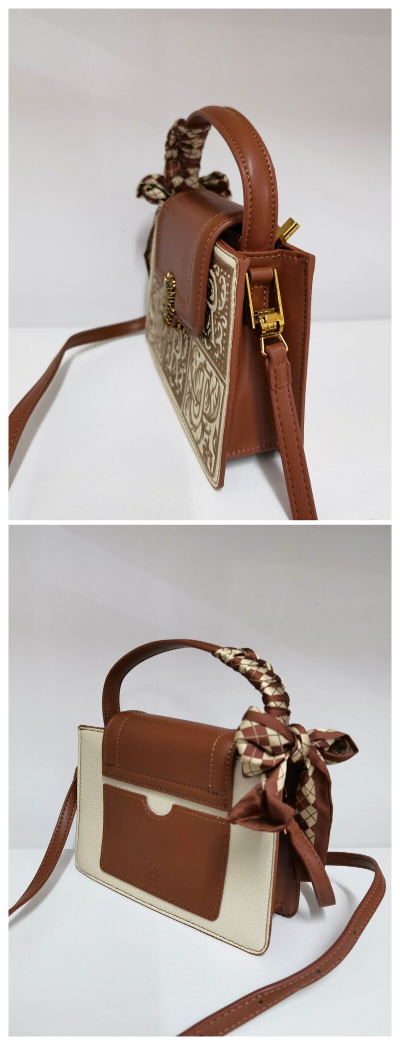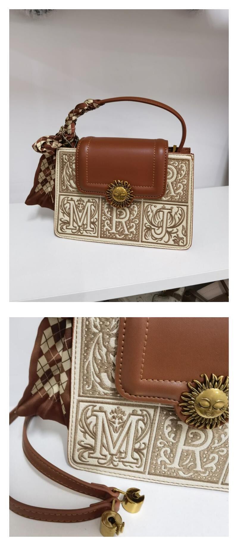 棕色絲巾手提包:長20 寬6 高14