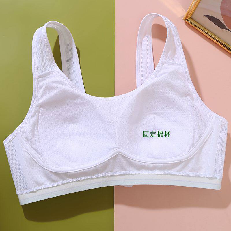 此款為運動型背心,固定杯型活動時不走位,具有良好的包容性和保護性,承托力好,減少胸部的壓力,無背扣設計,方便穿脫,適合于從一階段過渡到二階段的女生穿著,下圍采用雙面絨寬根,親膚的同時回彈力好不易變形,穿著服帖舒適,胸部立體空間適合發育中的少女穿著。透氣網眼面料,舒適美觀。