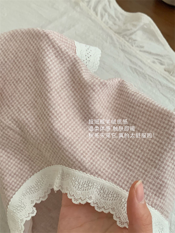 〔暖膚羊絨 千鳥格蕾絲邊內〕