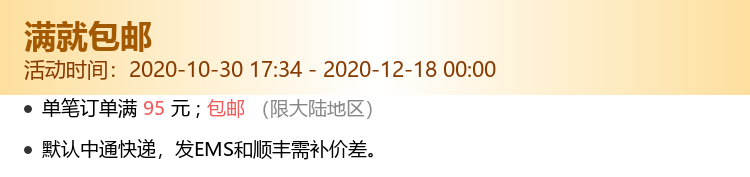 訂單達到免運條件後,運費將涵蓋關稅及5公斤以內包裹的基本運費。若包裹最終稱重超過5公斤,超重部分將依據集運倉運費計算公告(https://m.bcatlogistics.com/single?id=115)依照材積重量加收運費。客服人員將在收到加收運費通知後與您聯繫。若於收到收費通知D+5日內無法聯繫上您或未得到回覆,訂單將直接取消,包裹將進行逆物流退回廠商。此外,消費者需承擔大陸端的往返運費(約新台幣200至2000元不等)。若未支付逆物流費用,將無法進行退款作業。建議您在下單前先與商家客服確認運費預估金額。 - 「全球購折價券及運費折抵券,為消費者免費領取,視為附條件使用的優惠券,僅限訂單成功完成後生效。若因斷貨、缺貨等不可控因素導致訂單取消,折價券/運費折抵券因交易未成立而失效,恕不返還。消費者領取及使用本折價券,即視為同意相關活動規則及限制。」