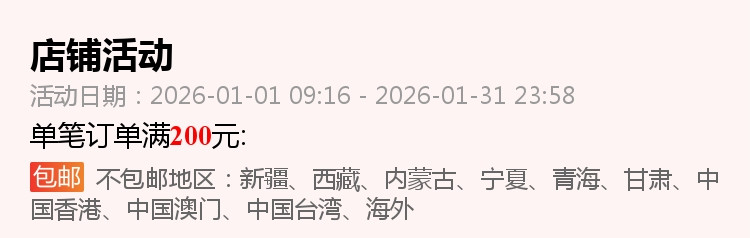 訂單達到免運條件後,運費將涵蓋關稅及5公斤以內包裹的基本運費。若包裹最終稱重超過5公斤,超重部分將依據集運倉運費計算公告(https://m.bcatlogistics.com/single?id=115)依照材積重量加收運費。客服人員將在收到加收運費通知後與您聯繫。若於收到收費通知D+5日內無法聯繫上您或未得到回覆,訂單將直接取消,包裹將進行逆物流退回廠商。此外,消費者需承擔大陸端的往返運費(約新台幣200至2000元不等)。若未支付逆物流費用,將無法進行退款作業。建議您在下單前先與商家客服確認運費預估金額。 - 「全球購折價券及運費折抵券,為消費者免費領取,視為附條件使用的優惠券,僅限訂單成功完成後生效。若因斷貨、缺貨等不可控因素導致訂單取消,折價券/運費折抵券因交易未成立而失效,恕不返還。消費者領取及使用本折價券,即視為同意相關活動規則及限制。」