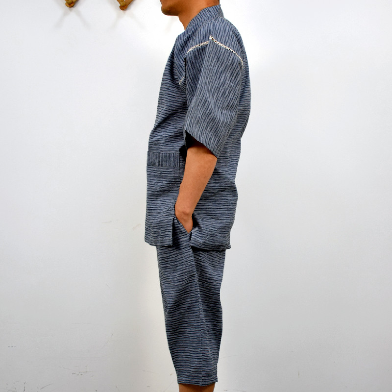外出穿著的甚平和服浴衣,棉布掛漿,挺括有硬度,棉布表面有粗糙的凹凸不平的摩擦感,夏季出汗時,清爽不沾身。要求柔軟的朋友們慎拍!!!