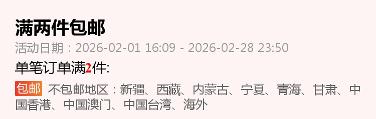 訂單達到免運條件後,運費將涵蓋關稅及5公斤以內包裹的基本運費。若包裹最終稱重超過5公斤,超重部分將依據集運倉運費計算公告(https://m.bcatlogistics.com/single?id=115)依照材積重量加收運費。客服人員將在收到加收運費通知後與您聯繫。若於收到收費通知D+5日內無法聯繫上您或未得到回覆,訂單將直接取消,包裹將進行逆物流退回廠商。此外,消費者需承擔大陸端的往返運費(約新台幣200至2000元不等)。若未支付逆物流費用,將無法進行退款作業。建議您在下單前先與商家客服確認運費預估金額。 - 「全球購折價券及運費折抵券,為消費者免費領取,視為附條件使用的優惠券,僅限訂單成功完成後生效。若因斷貨、缺貨等不可控因素導致訂單取消,折價券/運費折抵券因交易未成立而失效,恕不返還。消費者領取及使用本折價券,即視為同意相關活動規則及限制。」