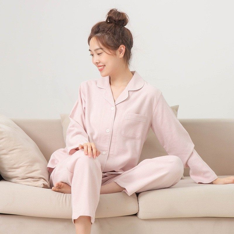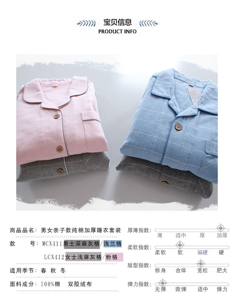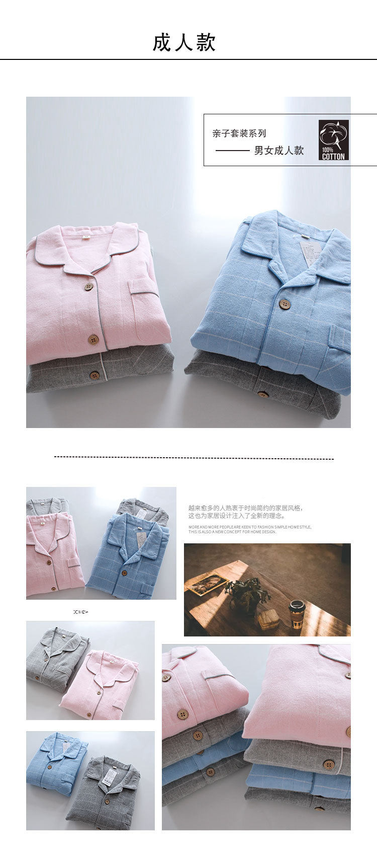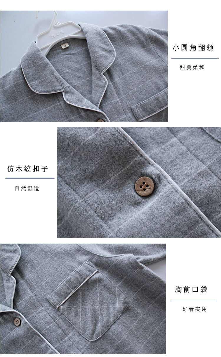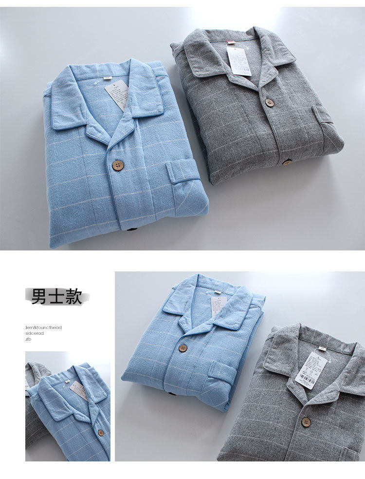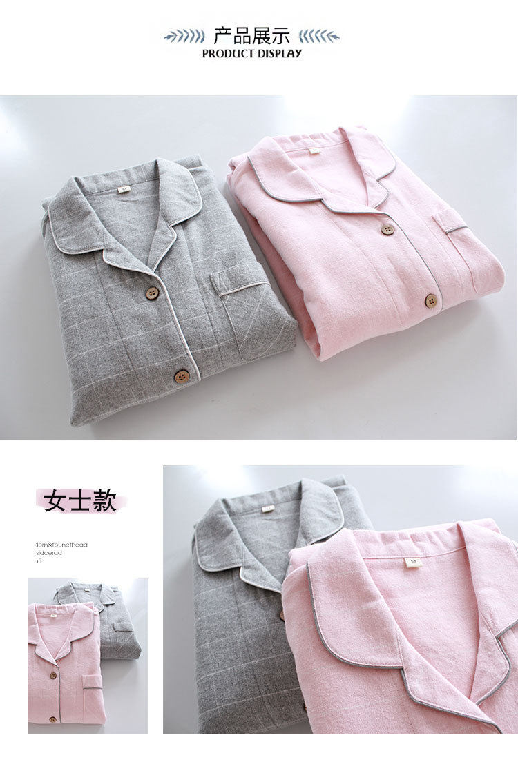 情侶睡衣男女式春秋長袖純棉磨毛絨布簡約日系開衫翻領家居服套裝
