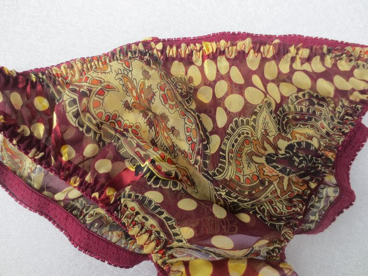 款式亮點:半透明,難得一求的若隱若現的性感真絲內褲。花色請注意,每條內褲的裁剪原因,花的位置不一定跟圖片一模一樣,請買家MM千萬要諒解這點。