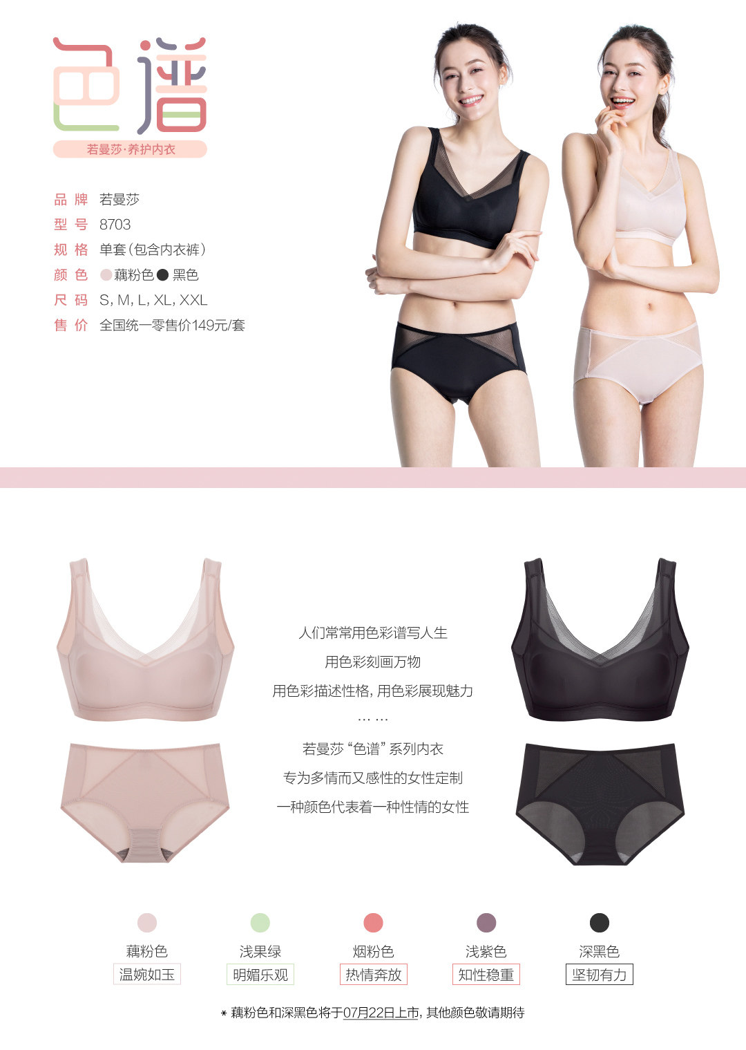 10套場景穿搭: ① 生理期 ② 孕期 ③ 運動、瑜伽 ④ 旅行 ⑤ 居家休閑 ⑥ 睡眠內衣 ⑦ 有乳疾病 ⑧ 時尚外搭 ⑨ 少女發育期 ⑩ 日常養護