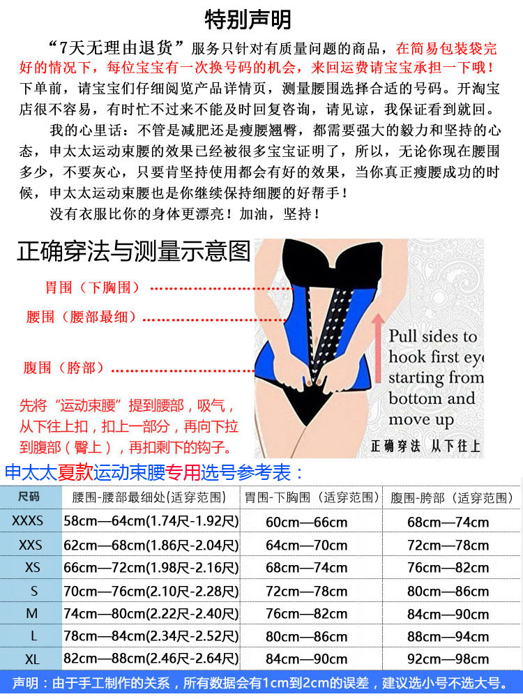 為了讓您用到合適的號碼,請一定先測量自己的身材數據,讓客服推薦號碼再下單,自行下單的寶寶,我們會在核實數據后,安排發貨,聯系不到的買家,不予發貨,敬請諒解!
