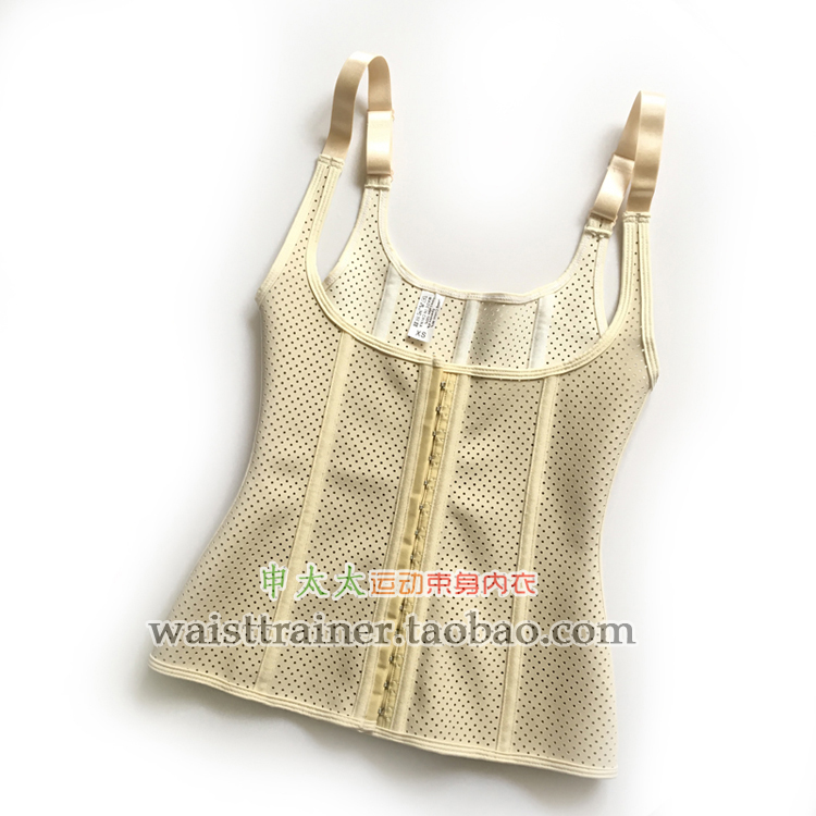 14鉤9鋼骨運動束腰,前中長度29厘米,2017年5月31日上新的背心款夏款運動束腰,寬肩帶可調節,背背佳式的版型,包裹肉肉更多,與夏款鏤空版同樣的面料,鏤空透氣,彈力比較好,穿起來容易適應。適合運動束腰入門級買家使用,背上肉肉多的寶寶,可以試試這款哦。