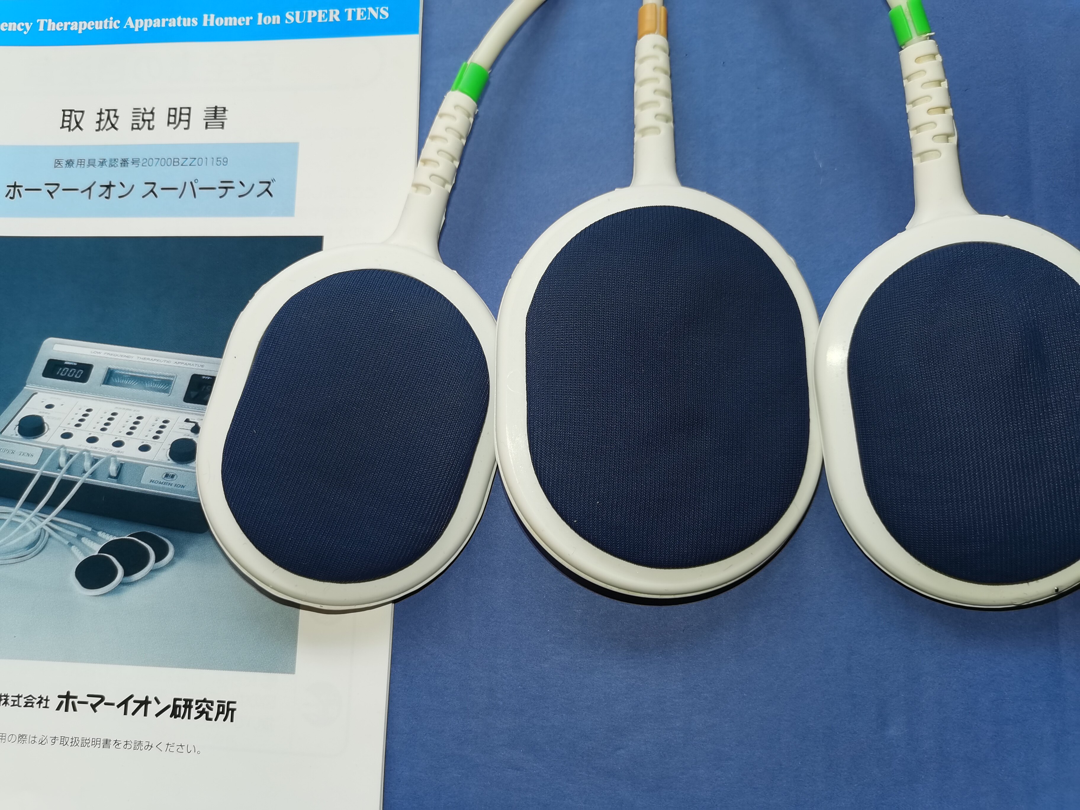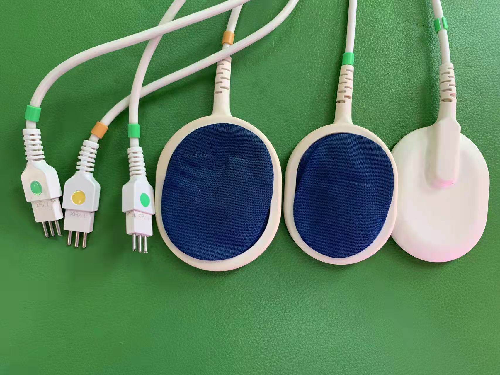 日本進口溫熱理療儀電極導子電纜線。 一個正極+兩個負極。硅膠海綿材質,金屬鍍銀三針式接口,適用大部分進口機器。 原裝機器含導子導線.