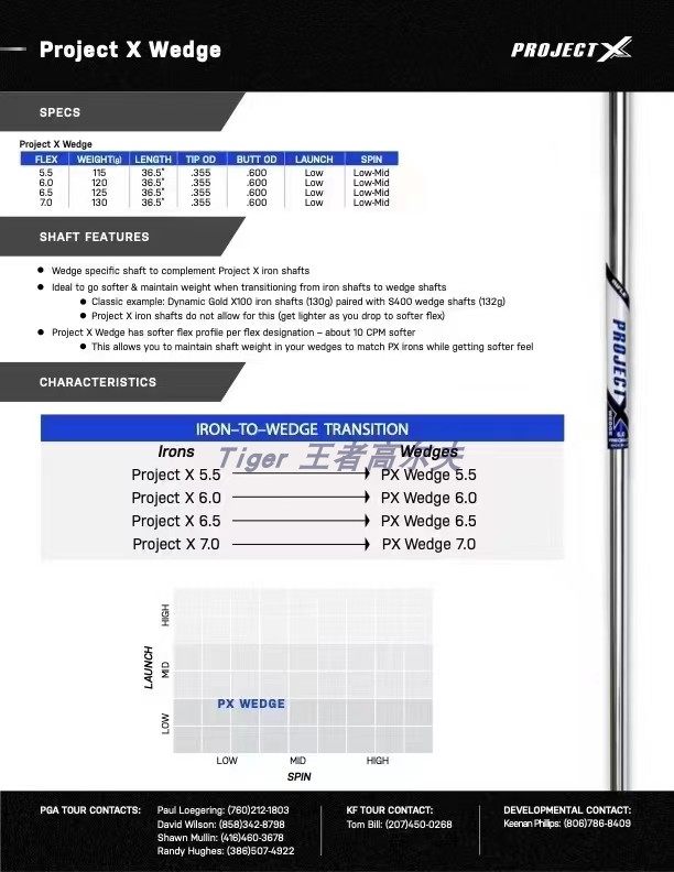 高爾夫球桿美國來福管PROJECT X WEDGE專用挖起桿沙桿鋼身2023款 打感通透一LIU的桿身 一體成型鍛造無焊接 指哪打哪的動力桿身 提高你的挖起沙桿水平