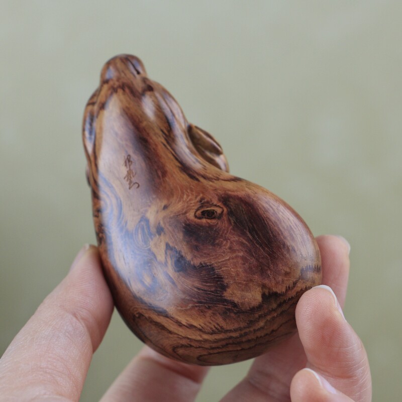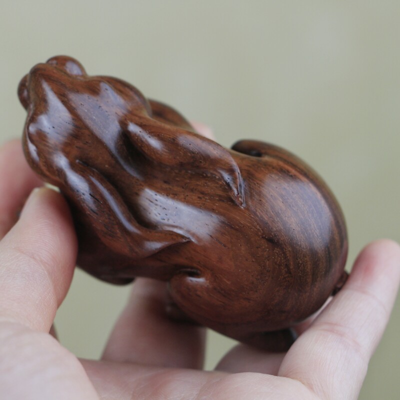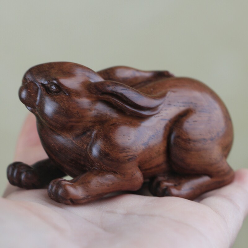 海南黃花梨西部老油梨兔子手把件,老家具料,底色均勻質感通透,玉化感強,全手工制作,規格:79*40*44mm,重量62克