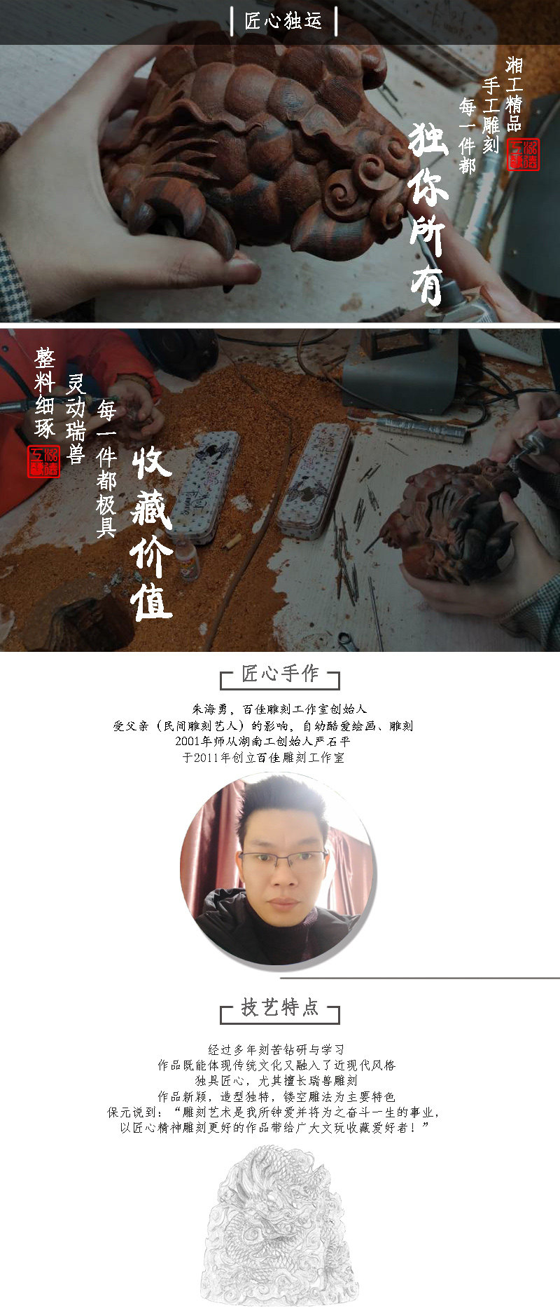 海南黃花梨老料手把件,龍馬精神,湘工全手工制作,規格:89*48*26mm ,重量44g