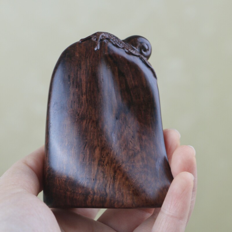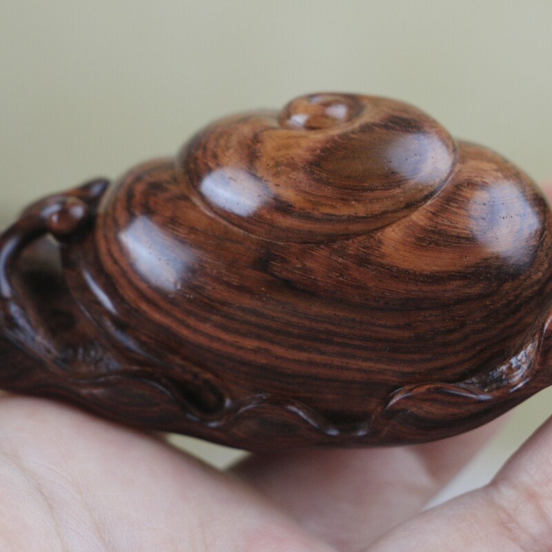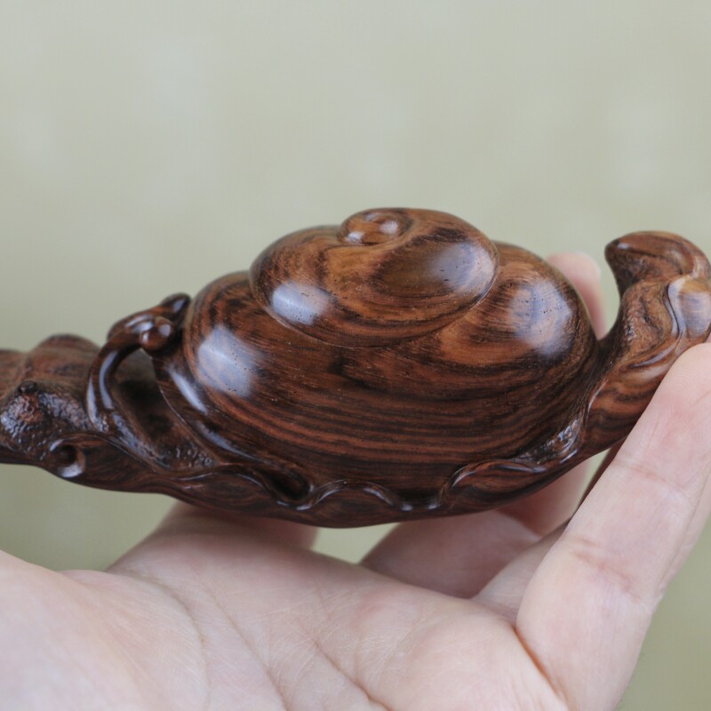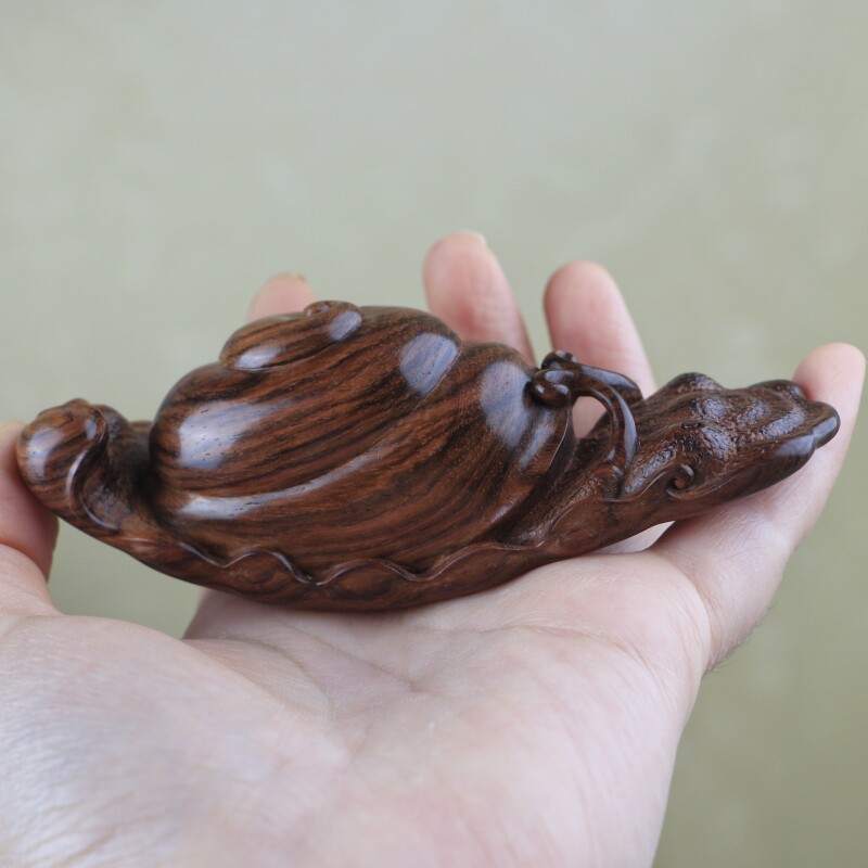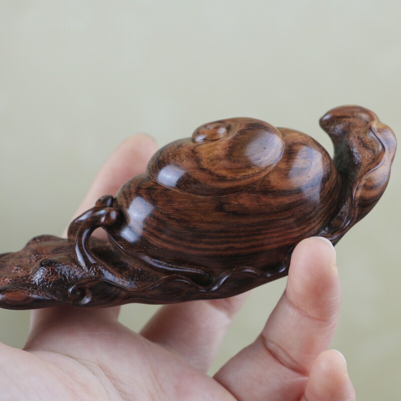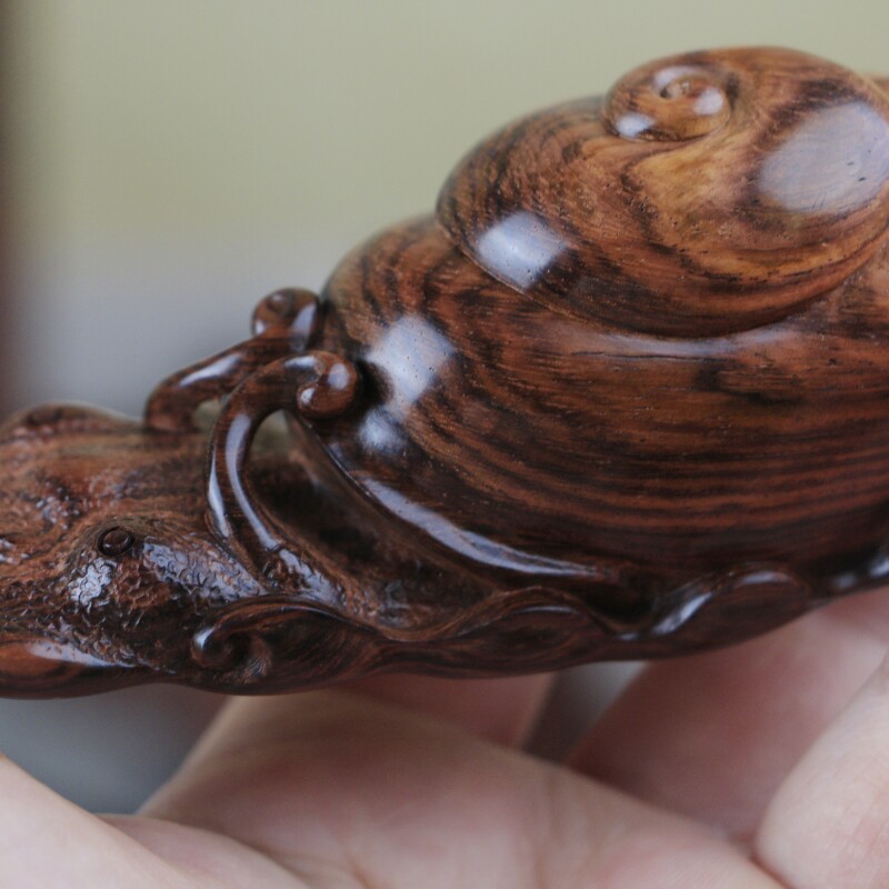 海南黃花梨紫油梨水波紋老料蝸牛手把件,質感通透,玉化感強,全手工制作,規格:68*22*83mm,重量56克