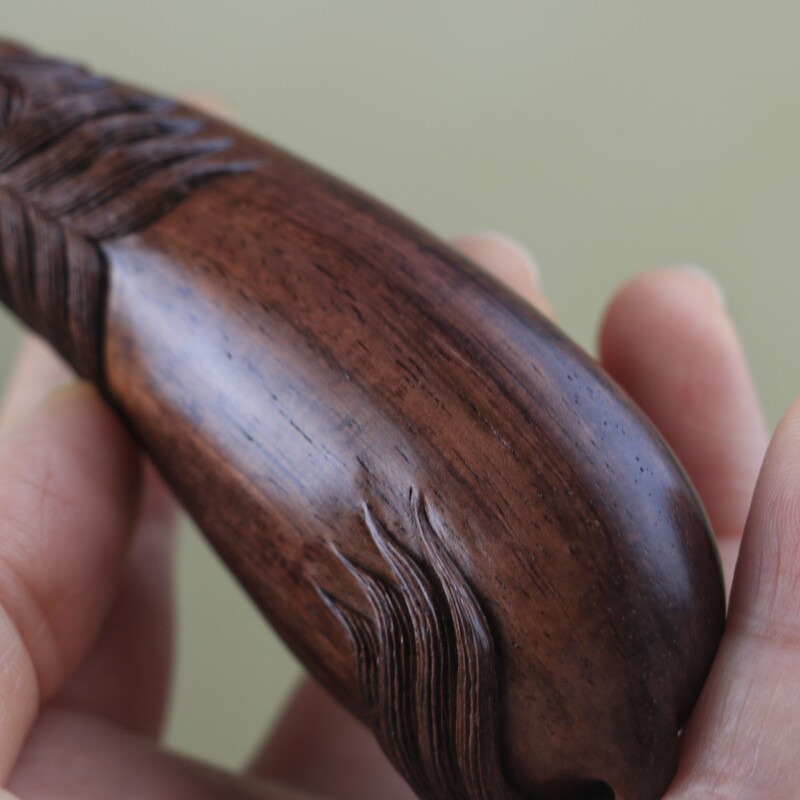 海南黃花梨紫油梨老料手把件,一馬當先,幾乎360度細水波紋紋理,質感通透,玉化感強,底子干凈,全手工制作,規格:103*35*23mm,重量37克