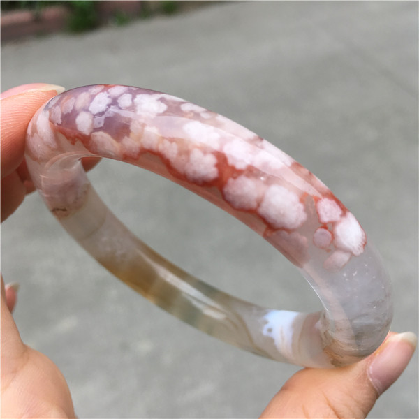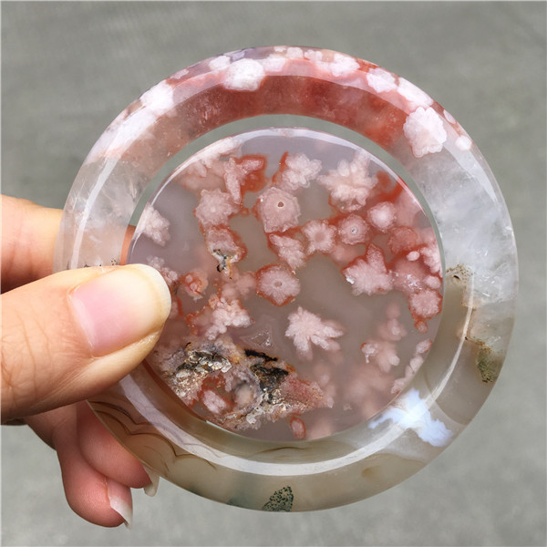 櫻花瑪瑙屬于海洋玉髓類,是馬達加斯加產的料,多裂多孔所以瑕多。