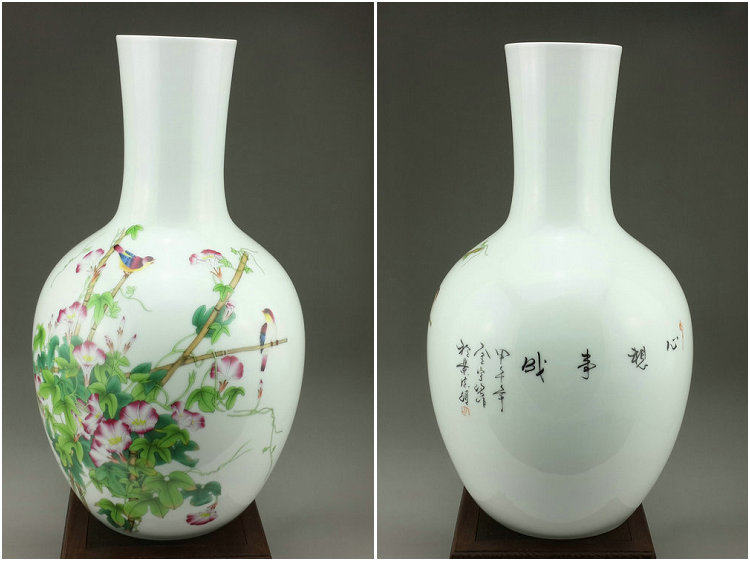 【產品名稱】:金宇銘青花花瓶 粉彩花瓶 客廳書房花瓶擺件裝飾