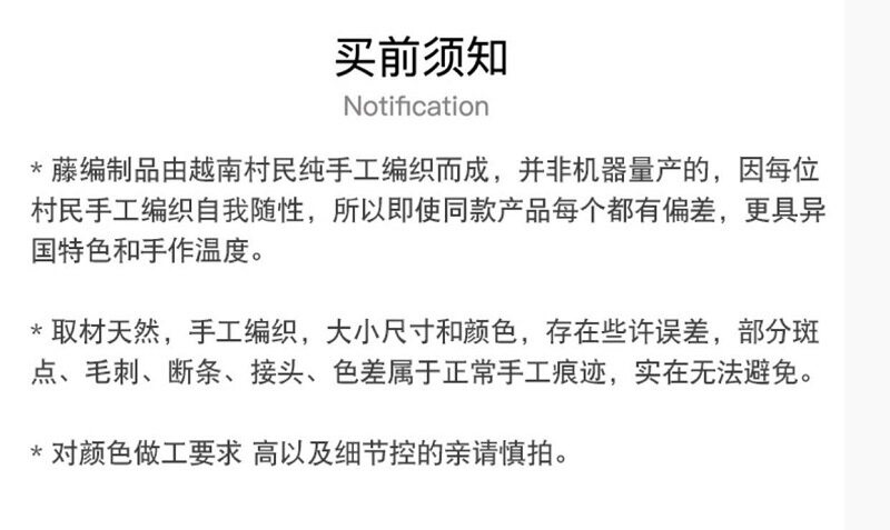 工藝缺陷:會有海草收尾接口,入倉時為了美觀會全部檢查修剪一次,但無法過度修剪,仍然會有接口存在;包裹把手的皮革運輸中有可能存在小磨損;會存在染色不均勻的問題。完美主義者請三思后再入手。