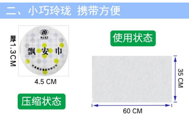產品特點:1、純棉制品,不含熒光增白劑,純天然;2、采用100%純棉水刺布壓制而成,舒適柔軟,體積小,方便攜帶;3、鈷60消毒技術,使用前真正無菌,更衛生安全; 4、使用方便,可水洗,反復使用,綠色環保;5、禮盒包裝,外觀大方,是健康送禮的佳品。
