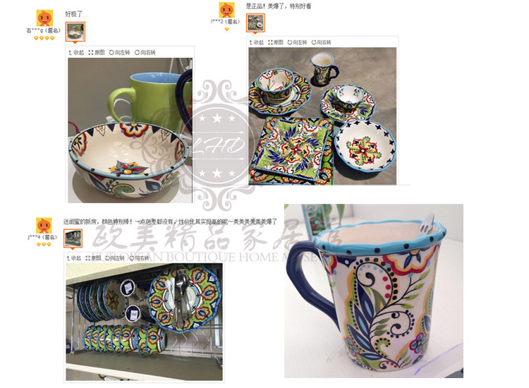 店內彩繪陶瓷均為外貿尾單品釉下彩環保無毒,通過了國際食品安全標準檢測,可以和食物全面接觸,請您放心使用。