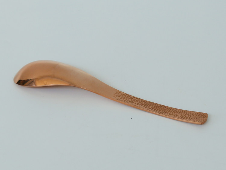 此款銅勺總長度15.5厘米,勺面長5厘米,勺面寬3.5厘米,重量約40克。