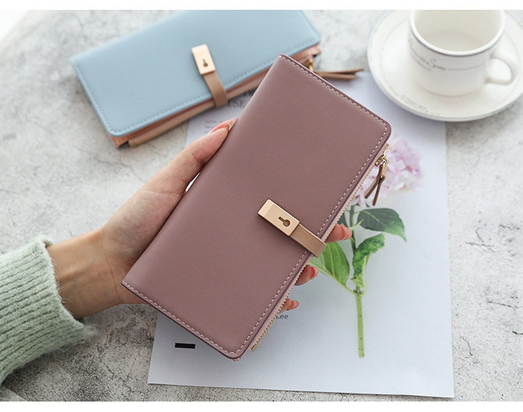 日韓質感簡約百搭實用錢夾時尚個性小清新純色女士手拿包長款錢包