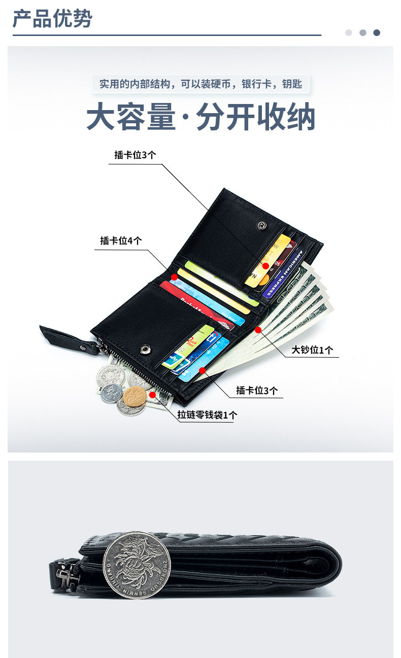 結構:大鈔位1個,插卡位10個,外側拉鏈零錢袋1個