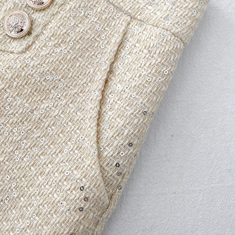 面料:粗花呢亮片   彈力無彈    厚度:適中    版型:合身