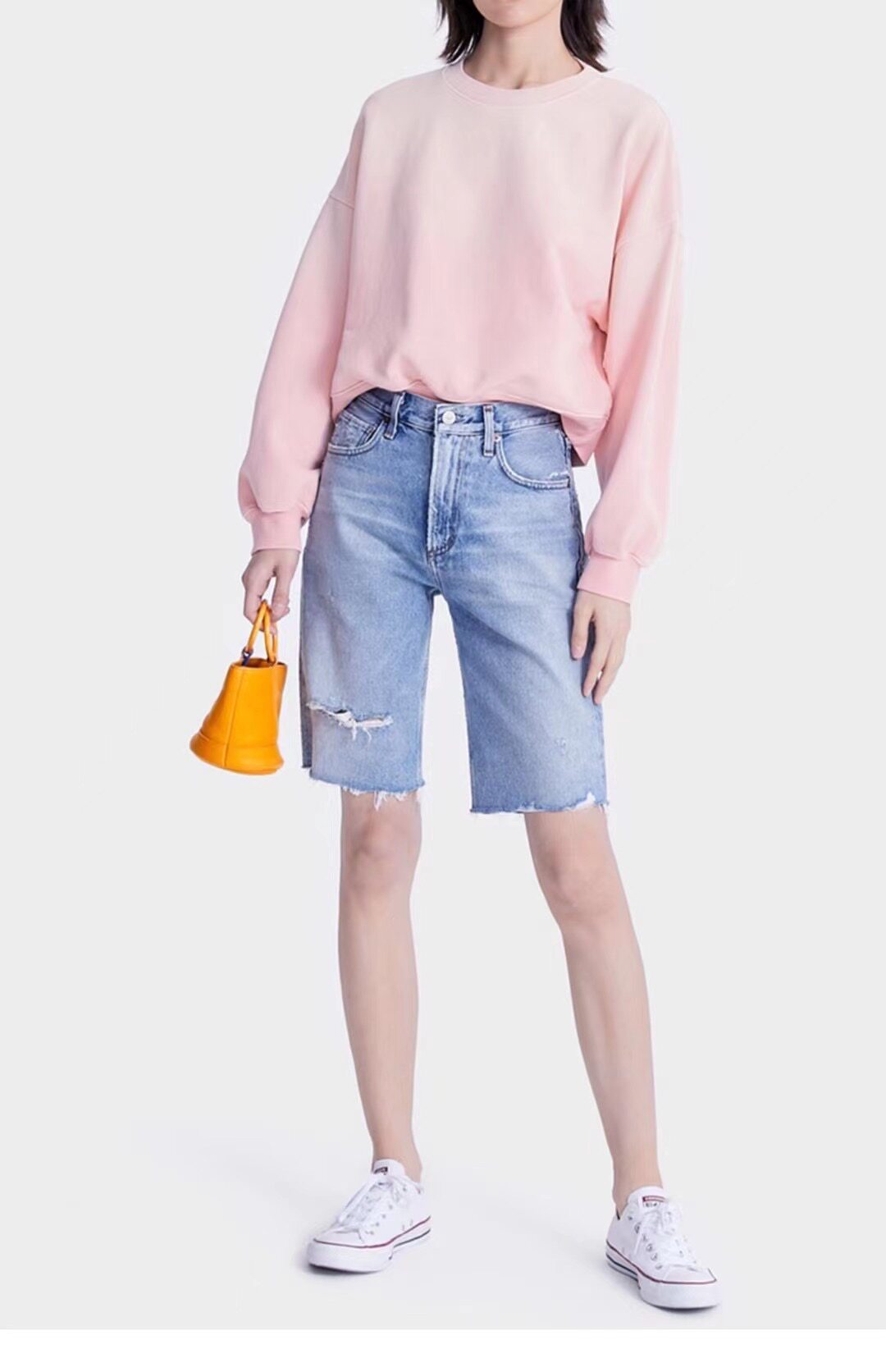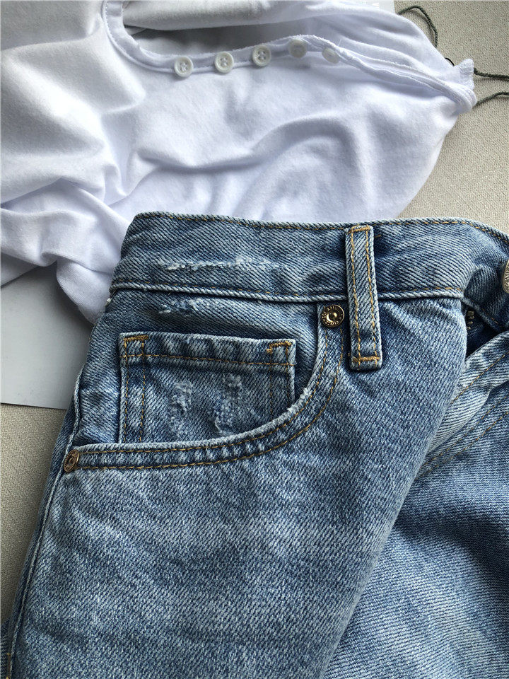 美系全品相五分牛仔~今年夏天依然是五分褲大熱~小寬松五分褲型,對腿型的包容性特別好了~棉無彈牛仔面料不易變形,自然水洗的效果。小破洞的時尚個性元素~這款是“Libby Short‘褲款不管是顏色還是版型搭起來真心很自由,不愧是有Free Style的夏日單品,上身后即秀了美腿又颯爽干練,輕松綻放你的美~