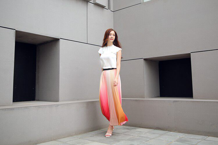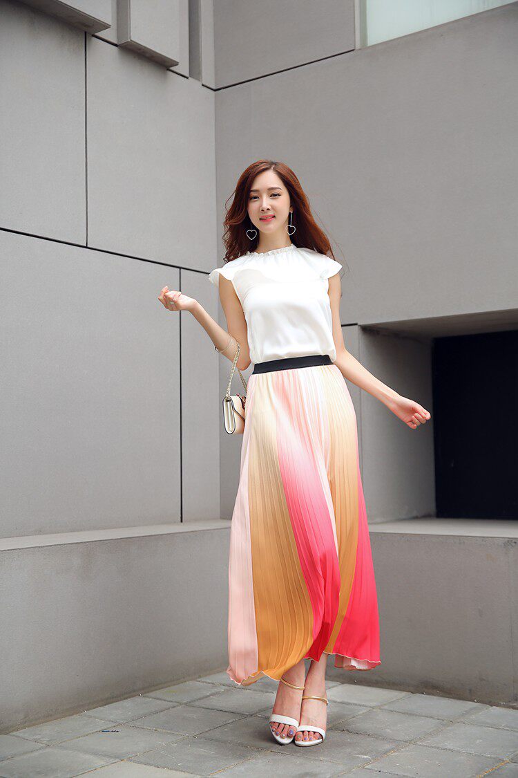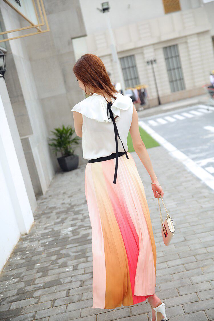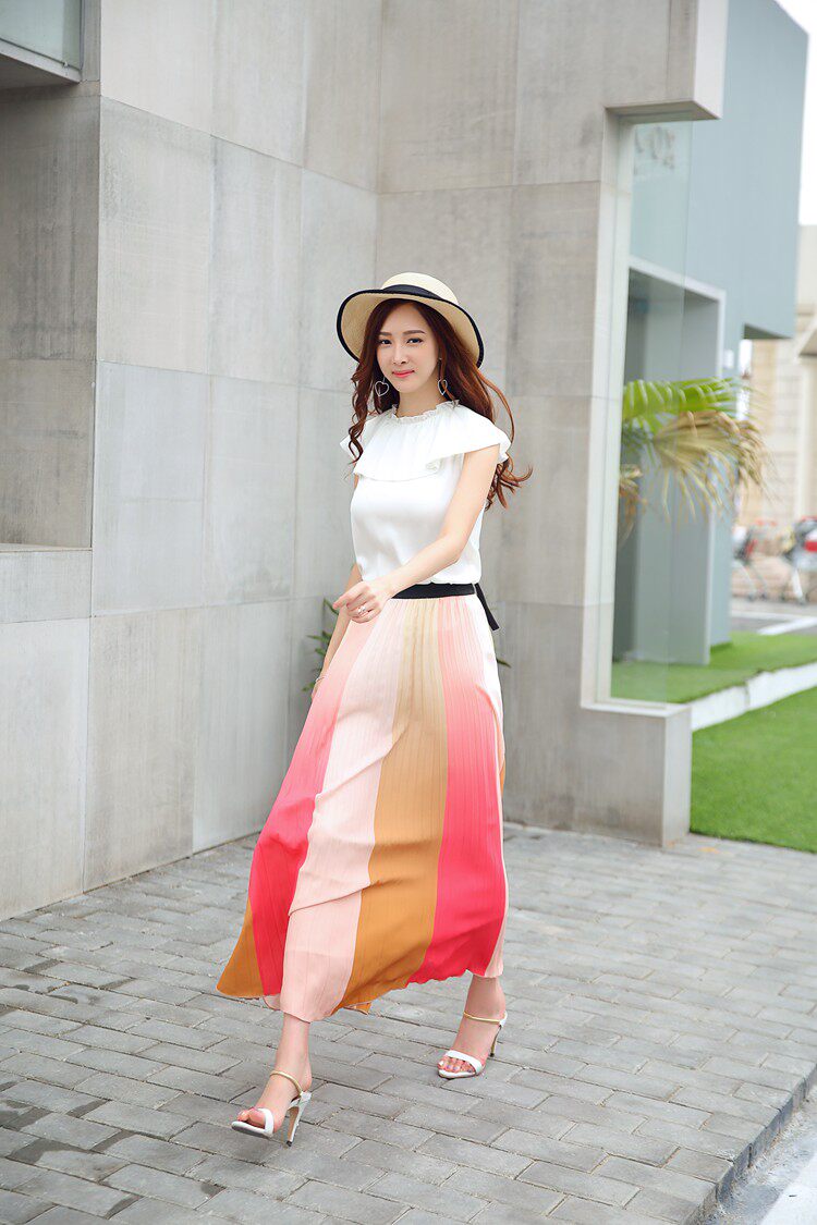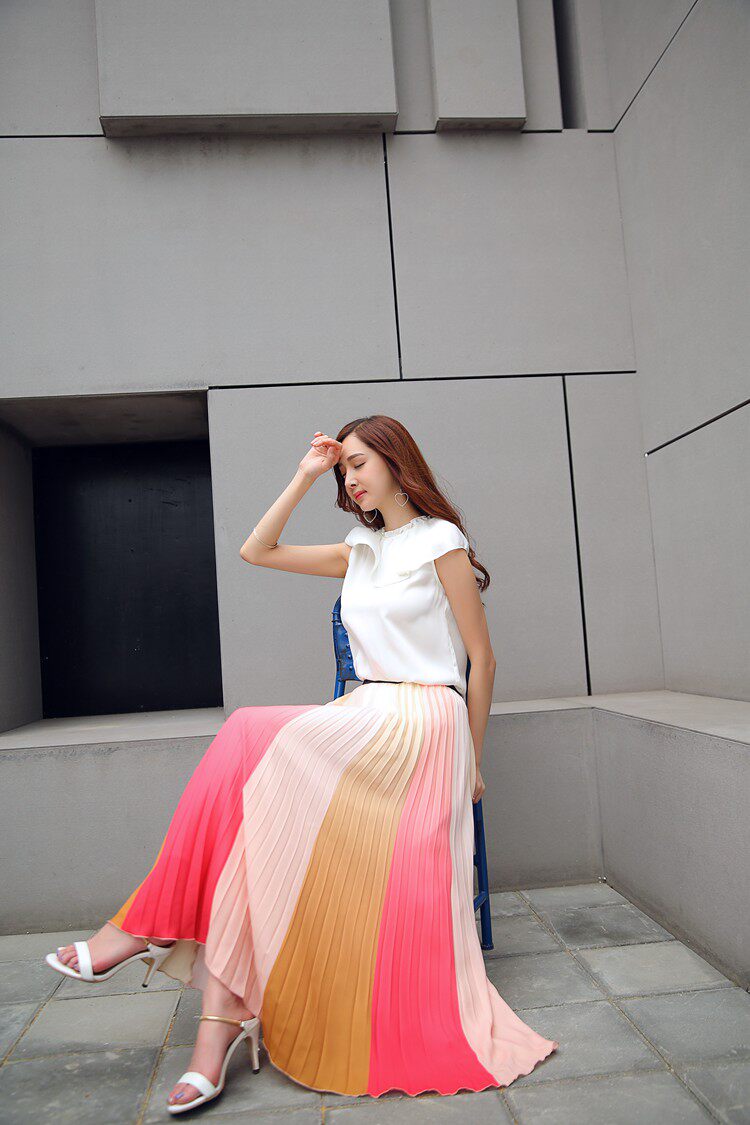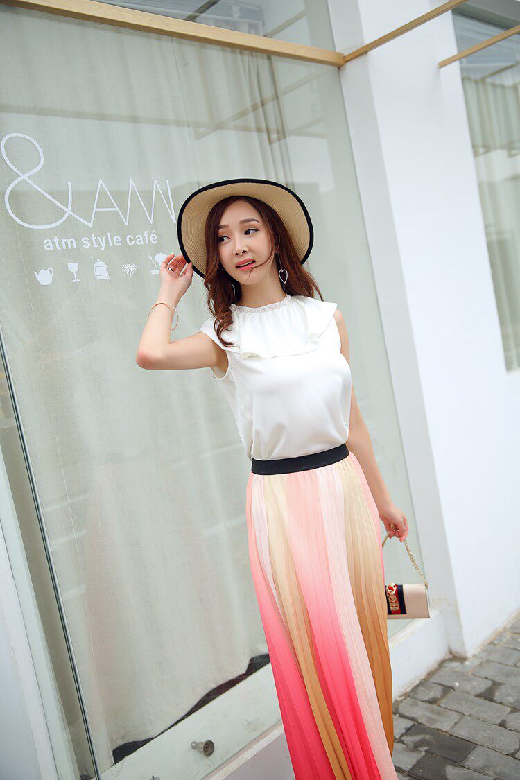 17春夏 清新拼色飄逸半裙JONAELO