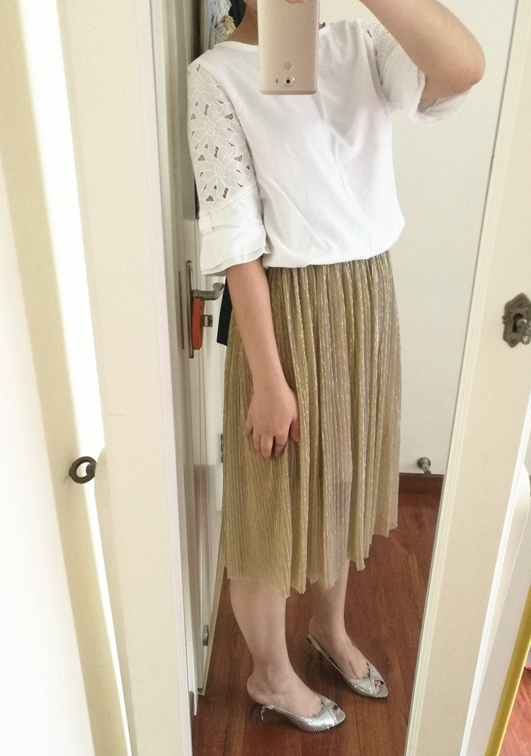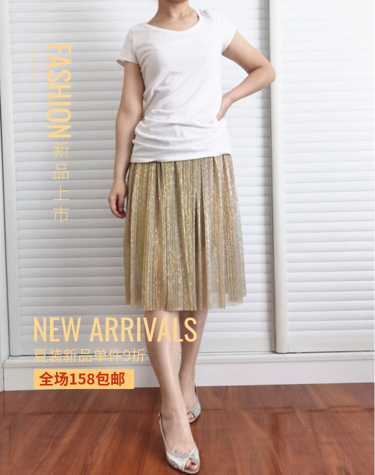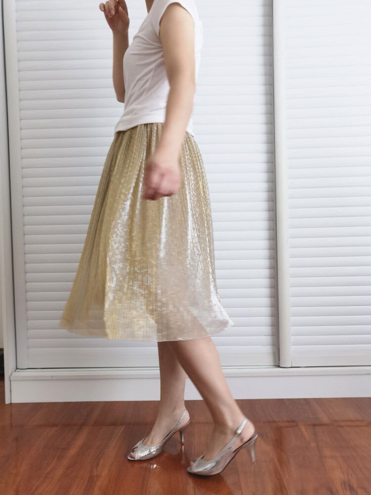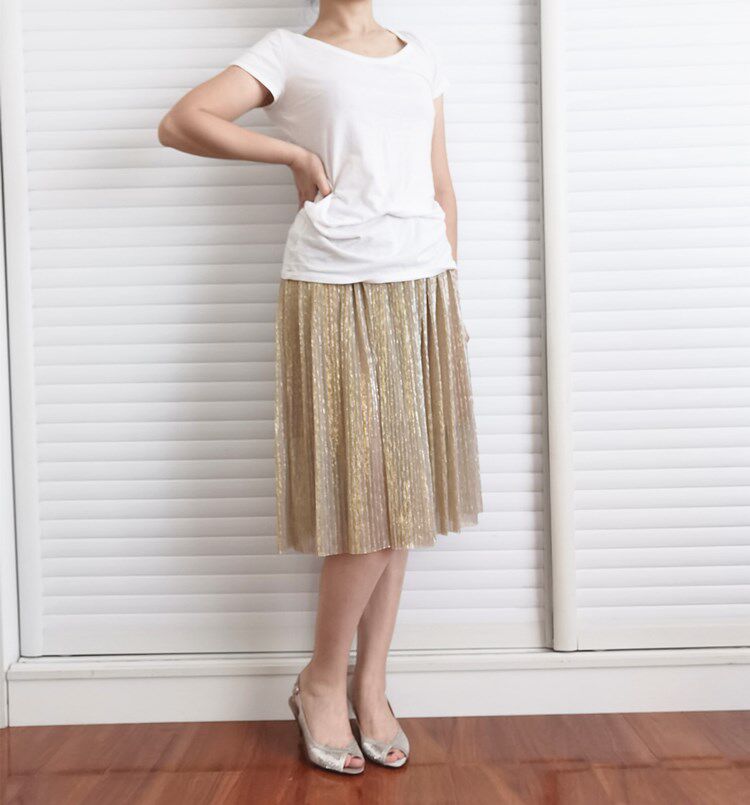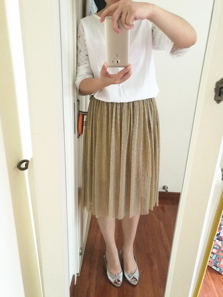 閃亮的金色百褶裙華貴大氣,出街搭配、上班通勤都是吸睛全場