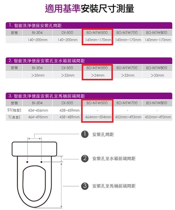 請注意:購買前請務必先測量馬桶的尺寸,可參考下面圖表