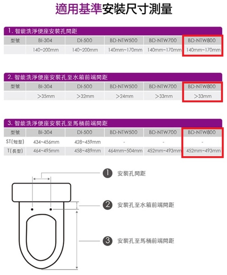 請注意:購買前請務必先測量馬桶的尺寸,可參考下面圖表