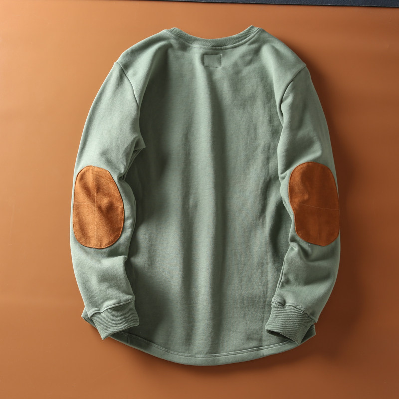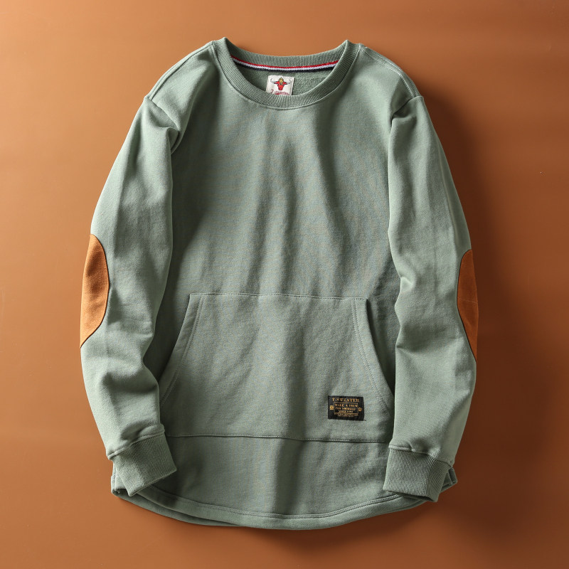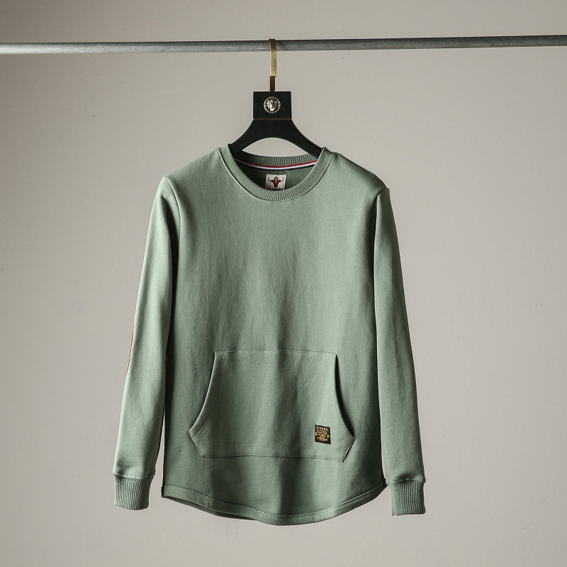 時尚休閑鹿皮絨貼布繡圓領套頭抓絨保暖衛衣!