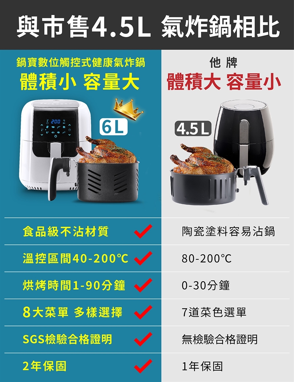 鍋寶CookPower 觸控健康氣炸鍋6L AF-6071W