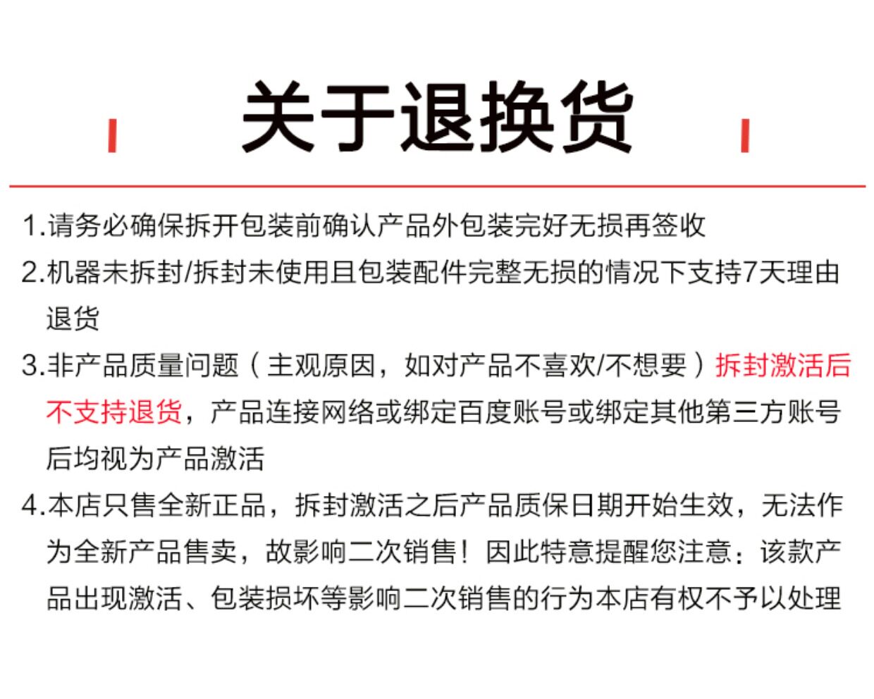 若商品存在瑕疵,請於簽收後7日內提出申請,並提供全程拆封錄影作為依據。商品是否為瑕疵將由廠商最終確認。運輸過程中的輕微碰撞痕跡不影響使用,不屬於瑕疵範疇。 - 拒收包裹的後果