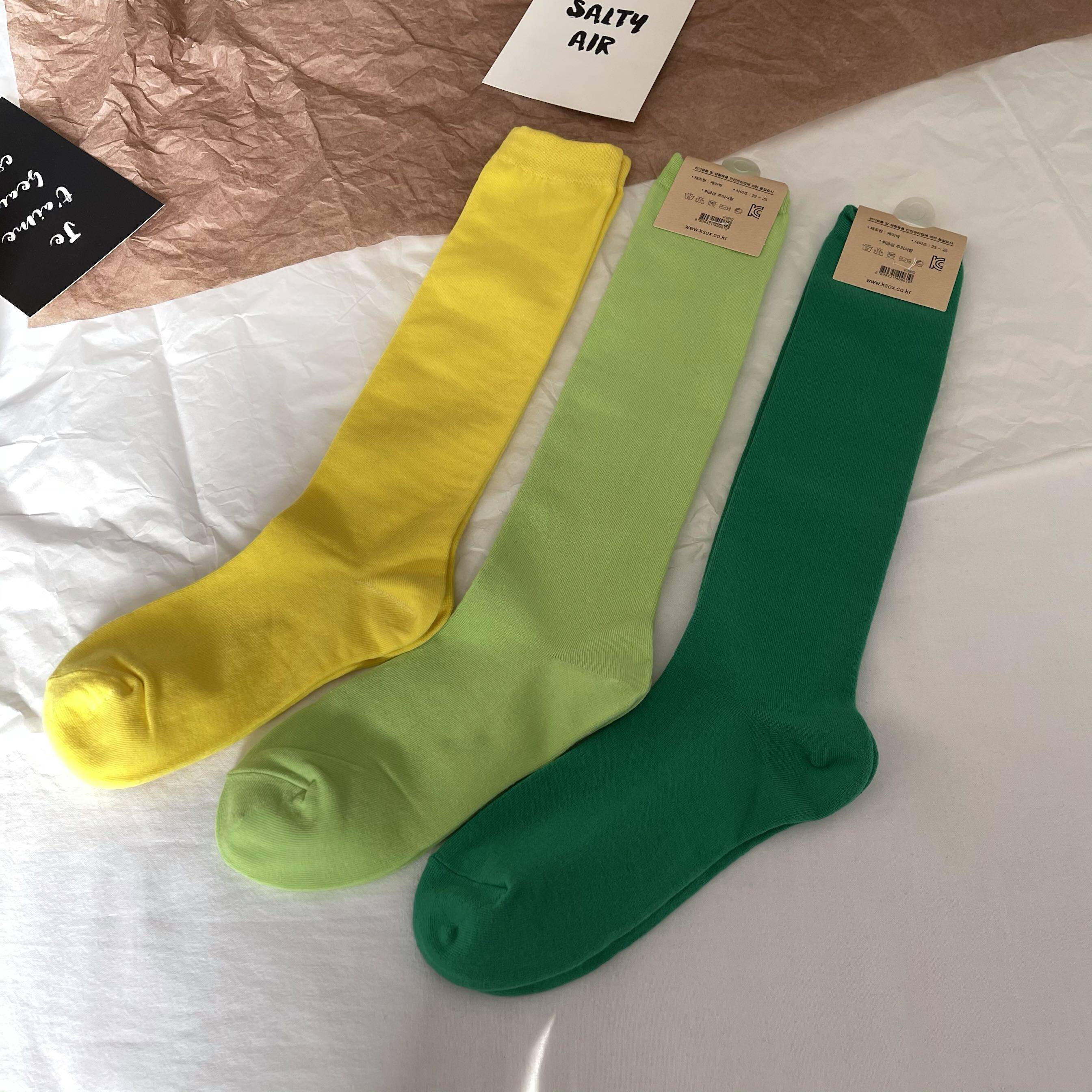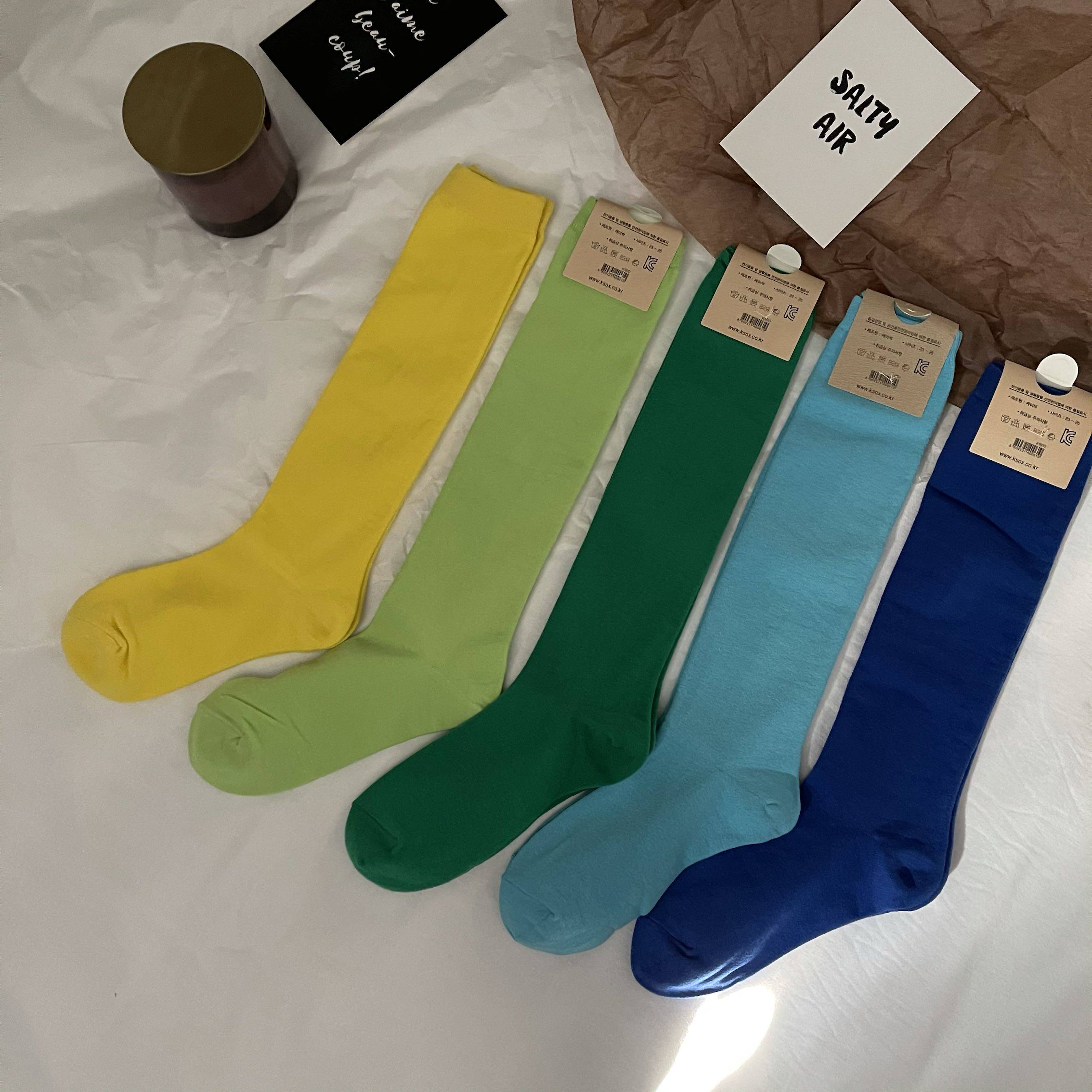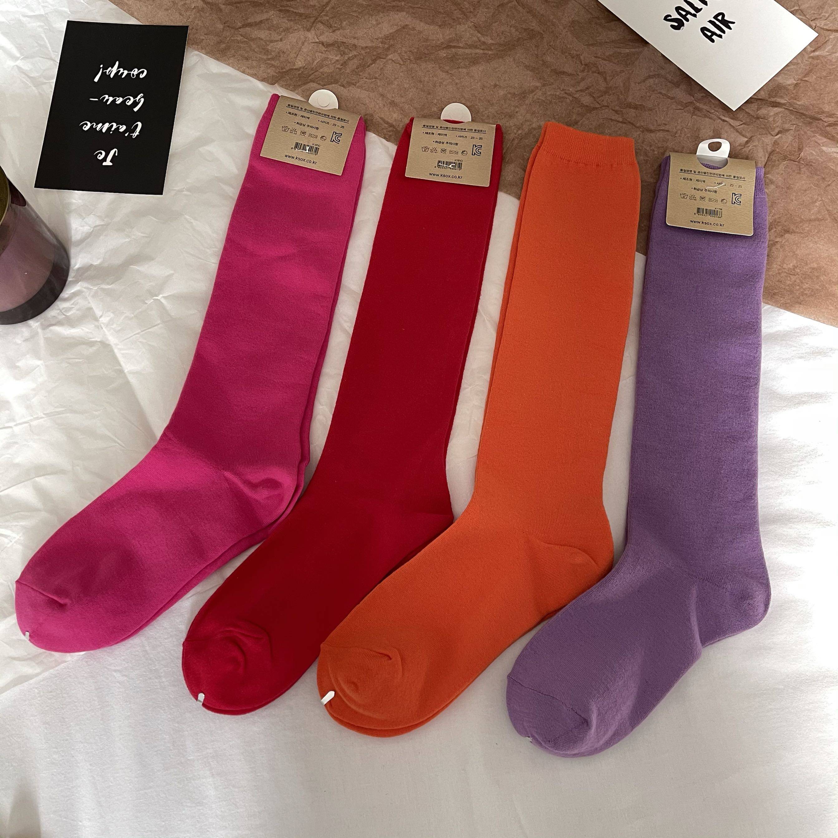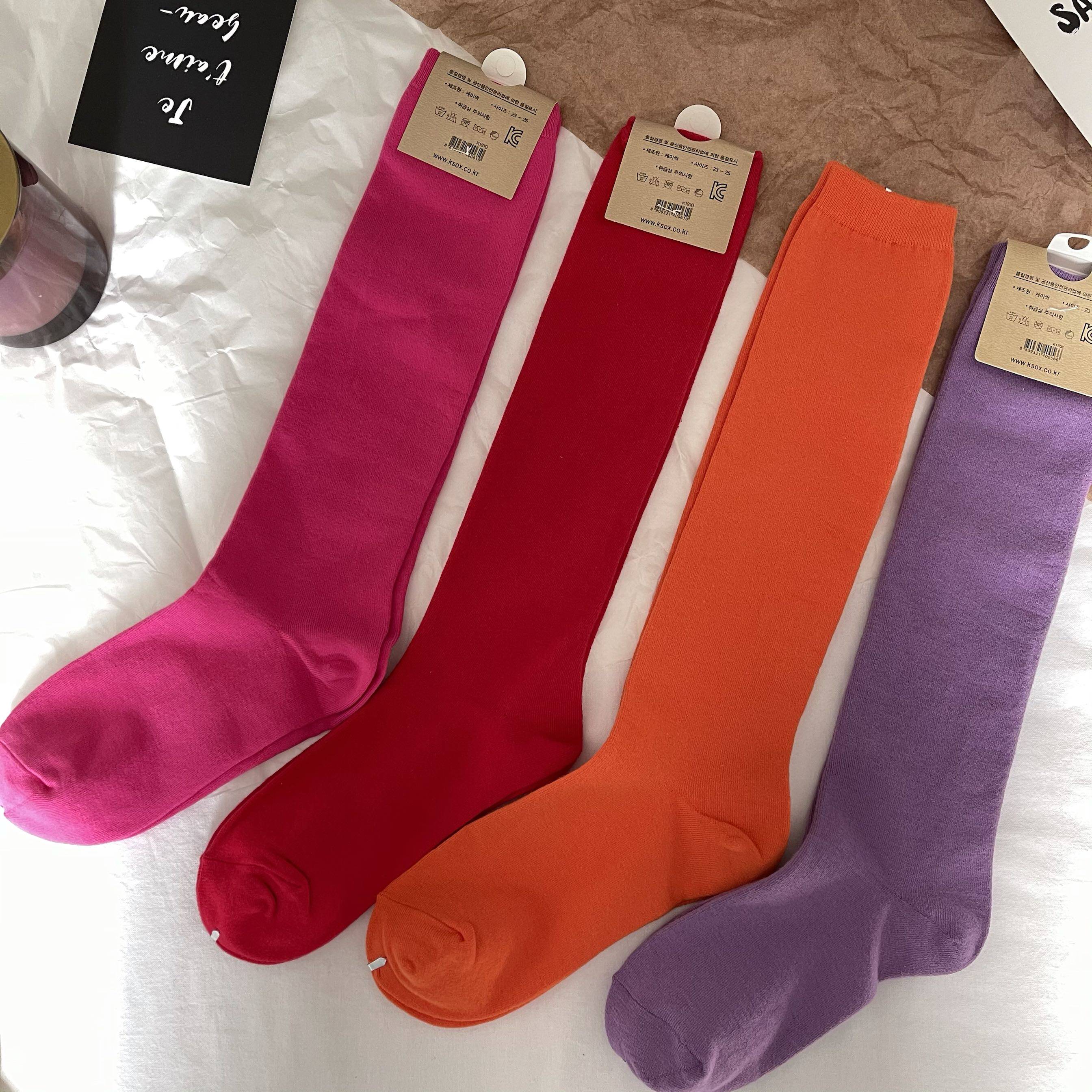 韓國進口純棉長襪上腳到小腿上膝蓋下左右